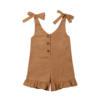 The jumpsuit is great, the size is right. Thanks to the ties, the size can be adjusted-enough for several seasons. The material is great for summer!