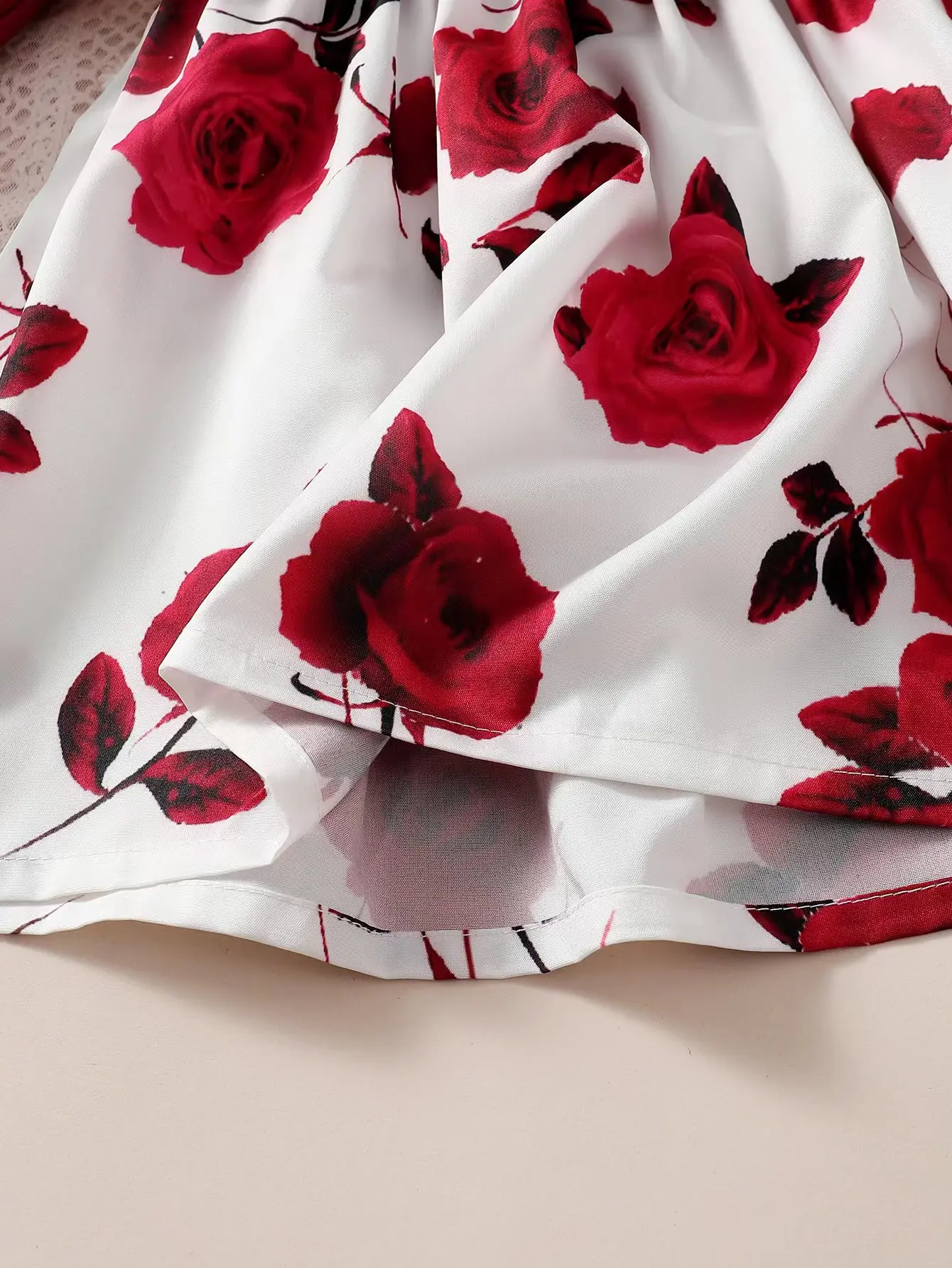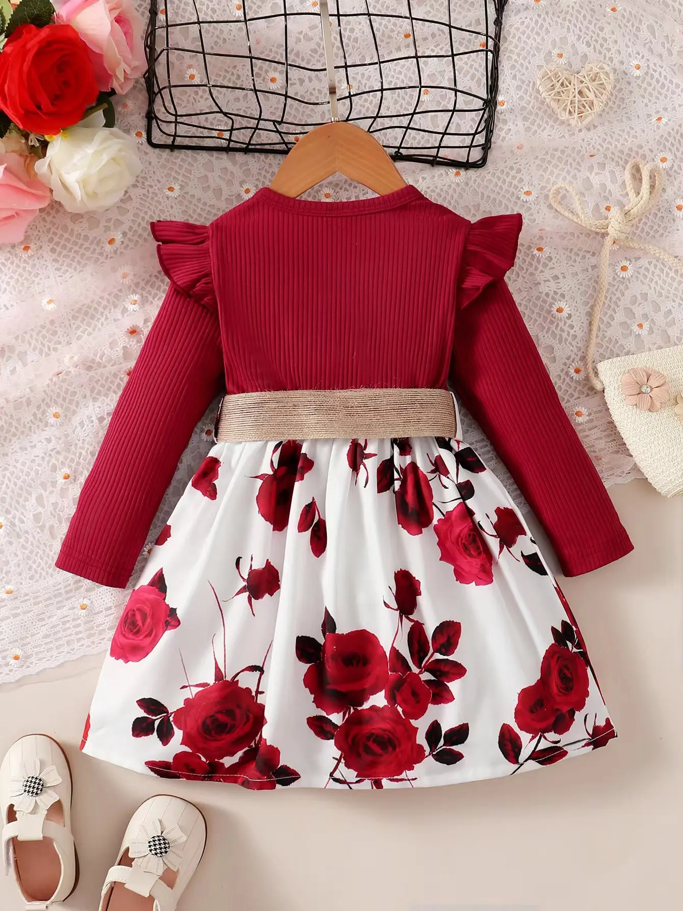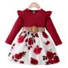 1-7 Years Children Girls New Year Dress Red Long Sleeved Flower Skirt for Birthday Wedding Party Wear Fashion Autumn Outfits
