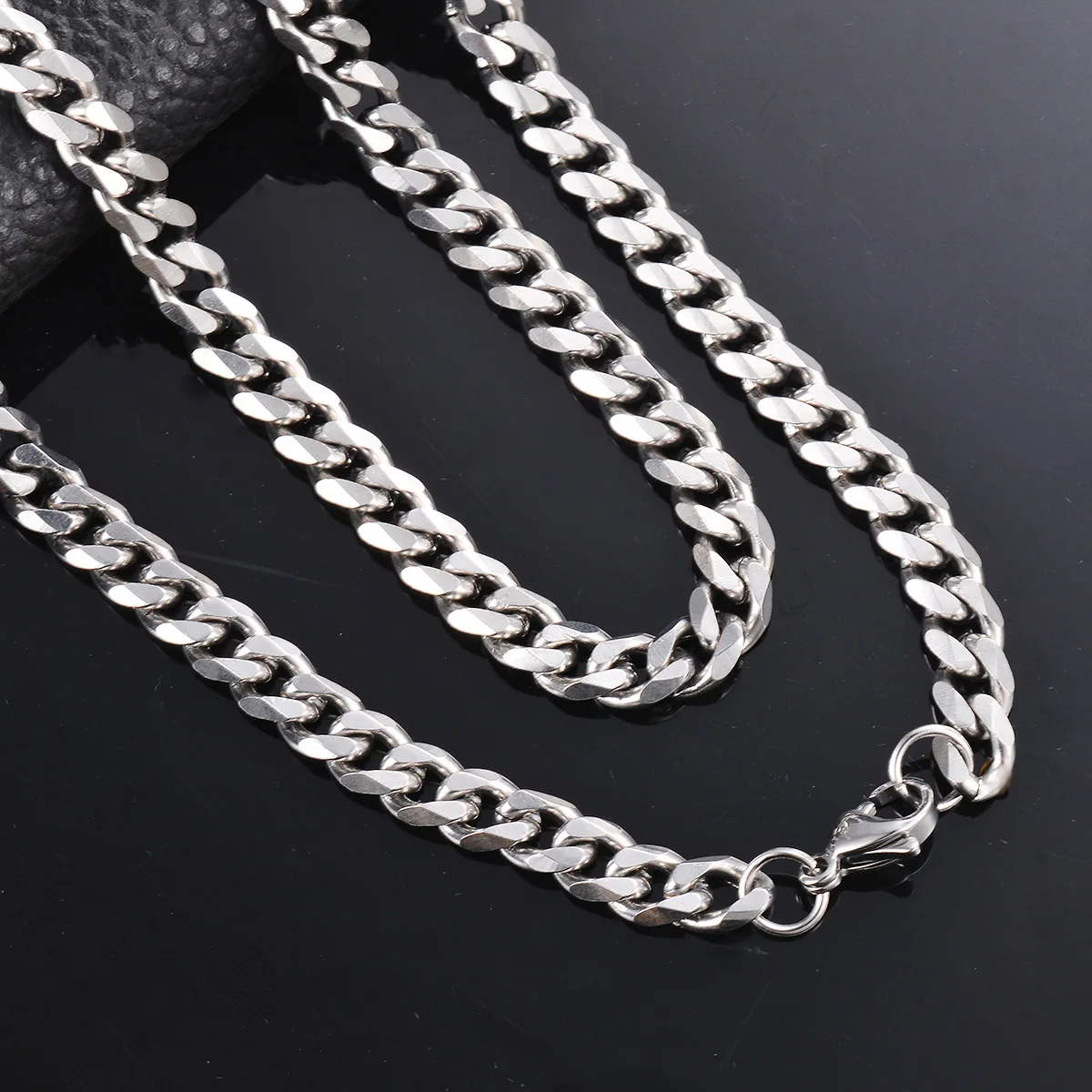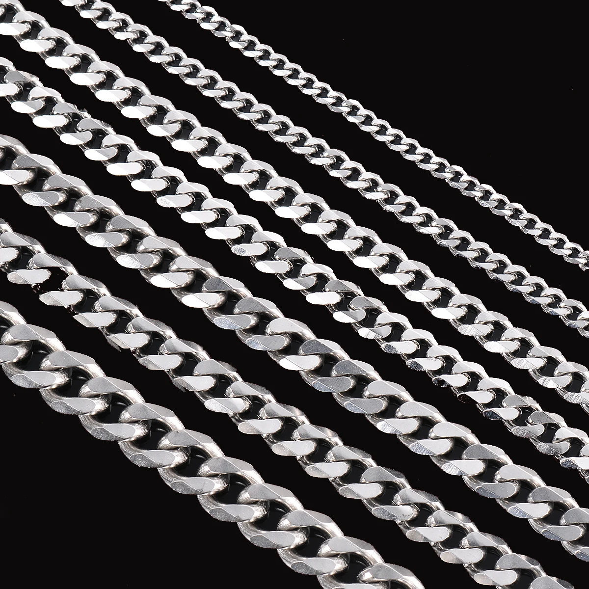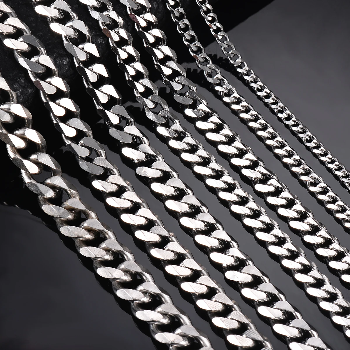 1 piece Size 3.6mm-9mm Men’s Necklace Stainless Steel Cuban Link Chain Bracelet Necklace Steel Color Male Jewelry