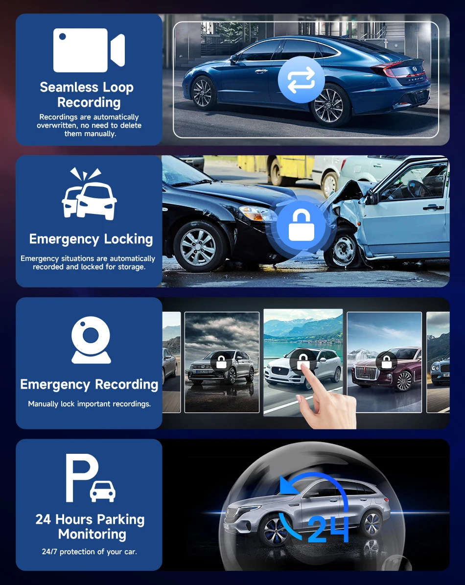 G-Sensor can lock up current DVR recodering during critical moments (such as car accidents), thus protecting your high-quality recordings.