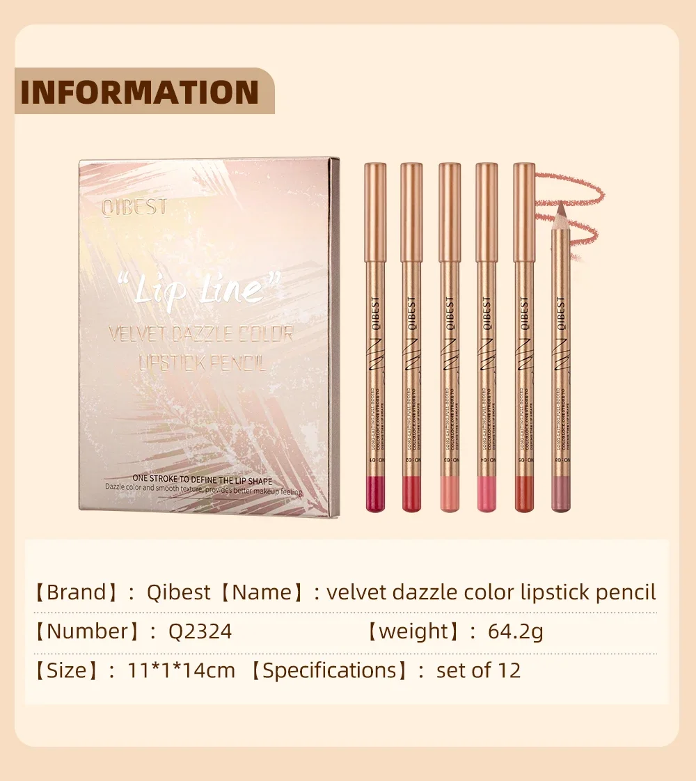 12 Colors Sexy Matte Lipstick Pencil Waterproof Lasting Lip Liner Pen Non-stick Cup Lip Liner Contour Pencil Beauty Makeup Sets