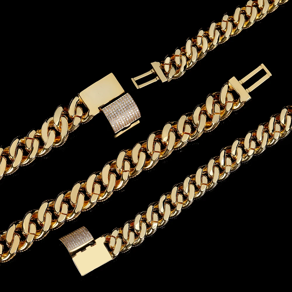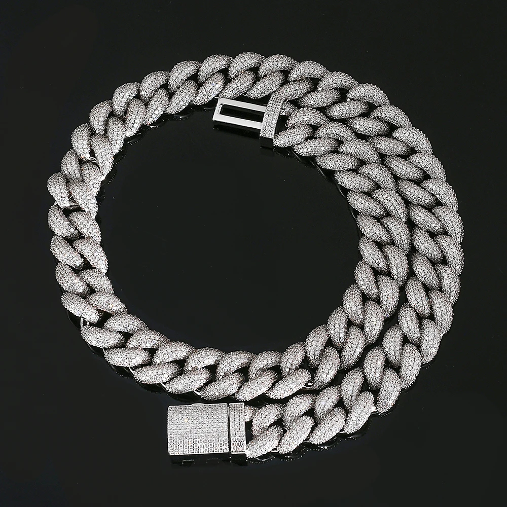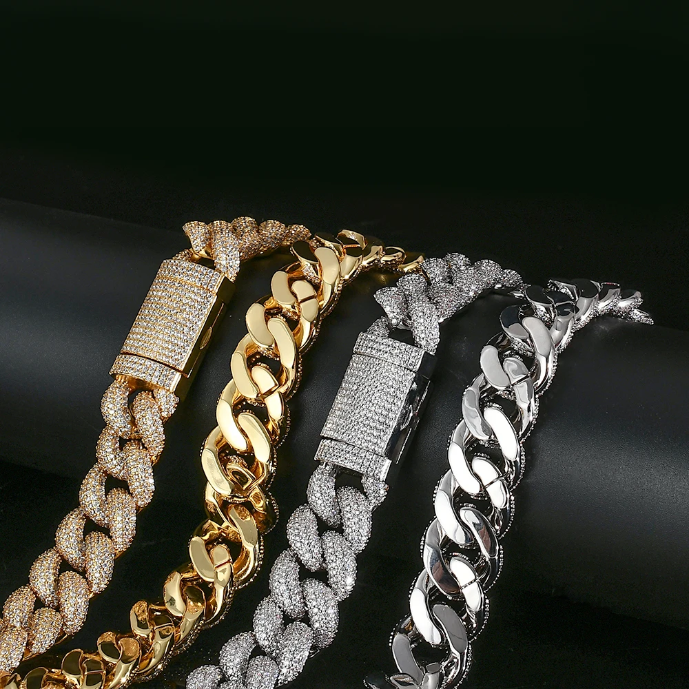 15/18MM Width Iced Bubble Cuban Link Chain Hip Hop Bling Full Zircon Luxury Cuban Necklace Jewelry Gifts for Men Women