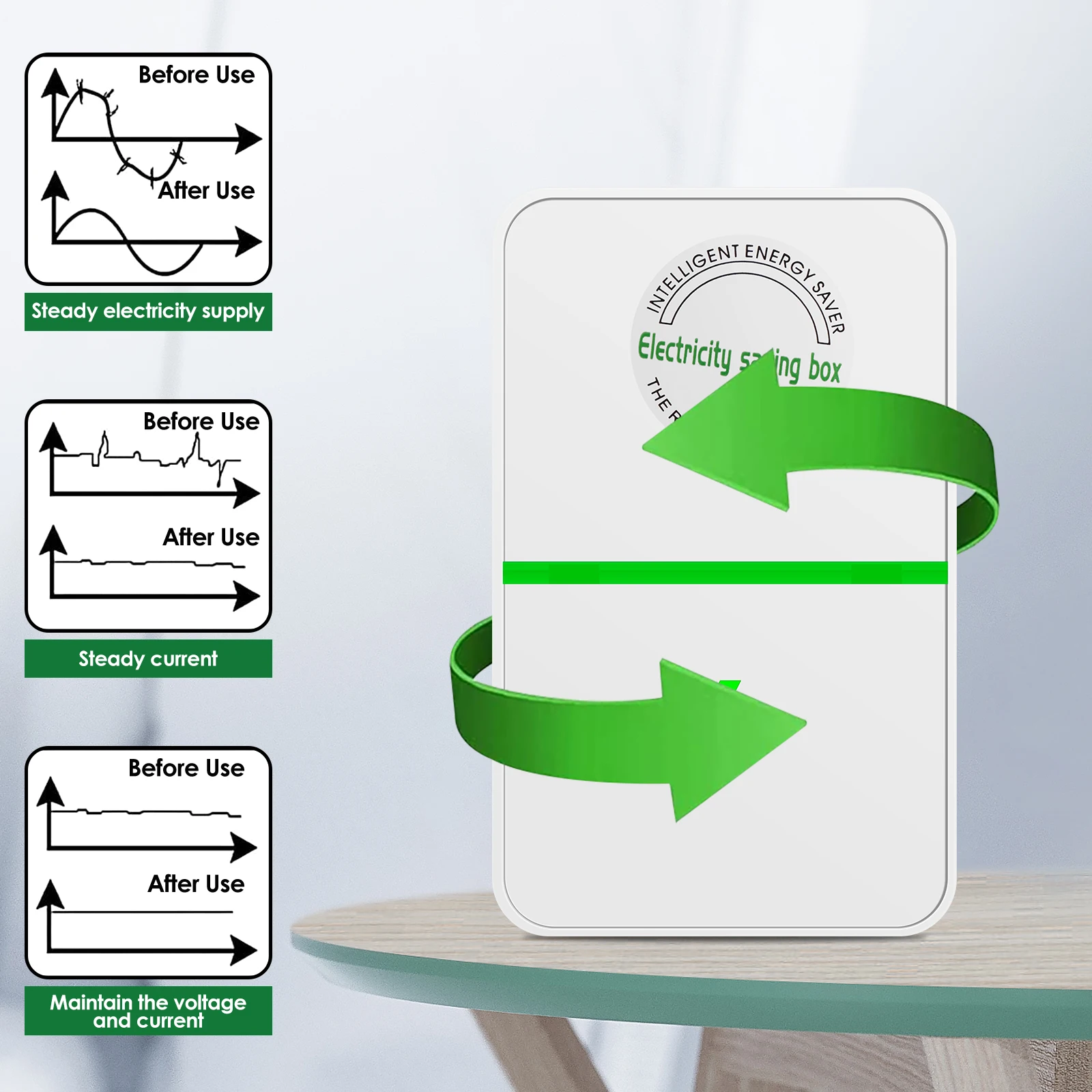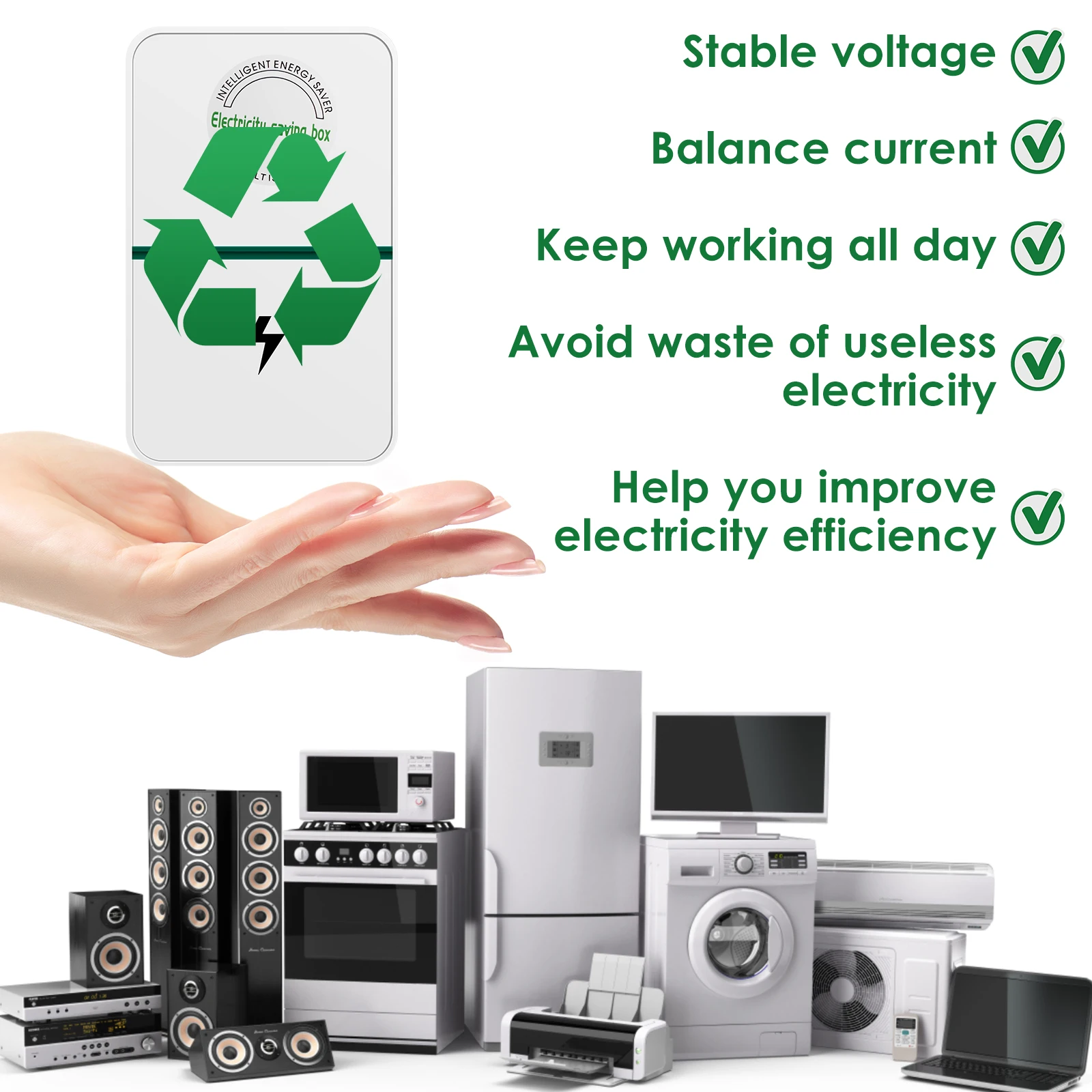 Are you always confused by your high electricity bills? Our power saver can improve the power of electrical appliances and reduce energy waste by stabilizing voltage and balancing current, thus reducing your electricity bill. Perfect energy saving assistant helps you reduce your electricity bills.