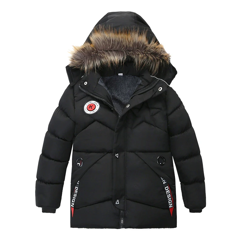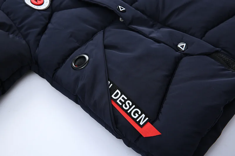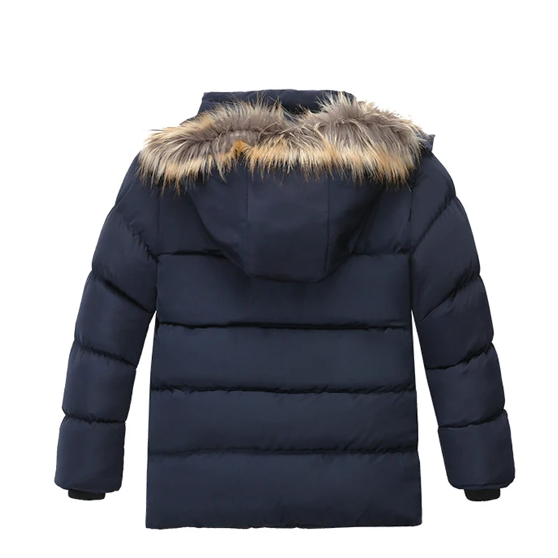 2-6 Years Boys Fashion Fur Collar Winter Warm Down Jacket Kids Mid-length Thickened Hooded Coat Children’s Cotton Clothes