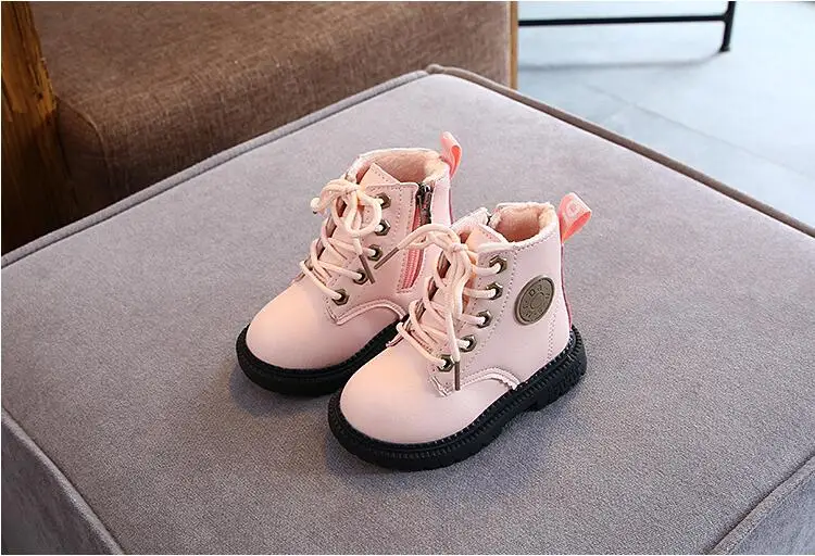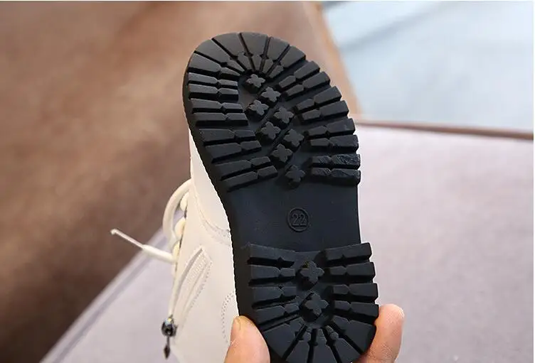 2020 Autumn/Winter Children Boots Boys Girls Leather Boots Plush Fashion Waterproof Non-slip Warm Kids Boots Shoes 21-30