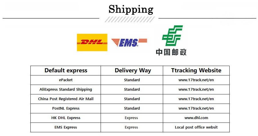 We ship by EMS, DHL, fedex, china post, epack and so forth.