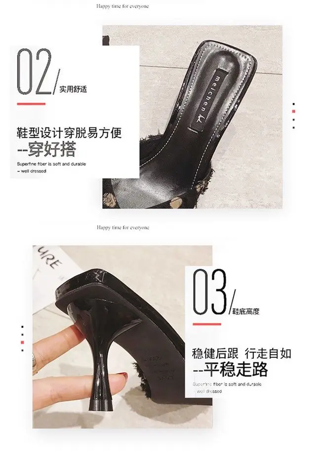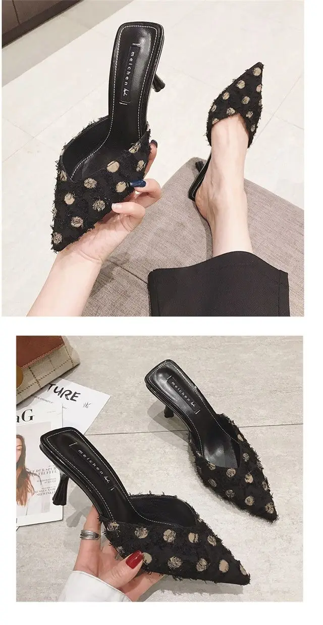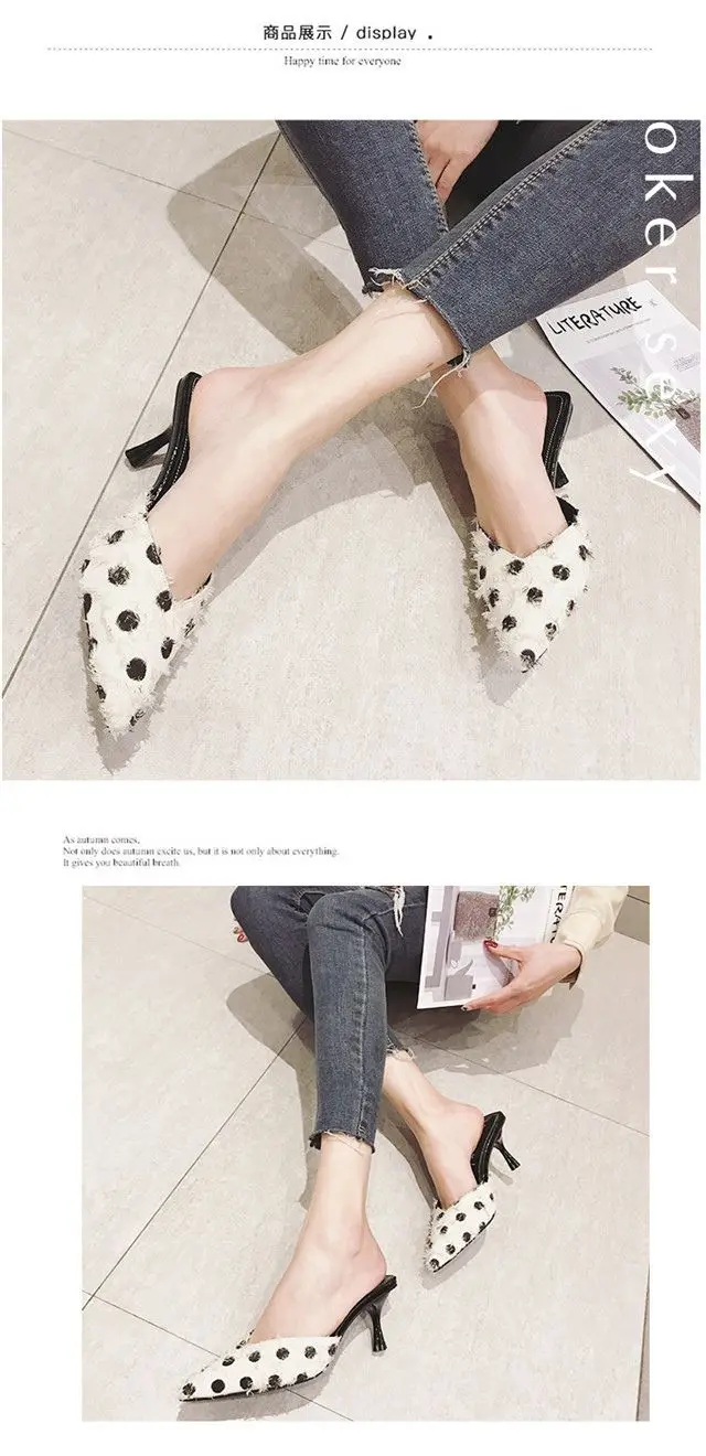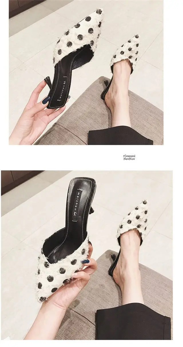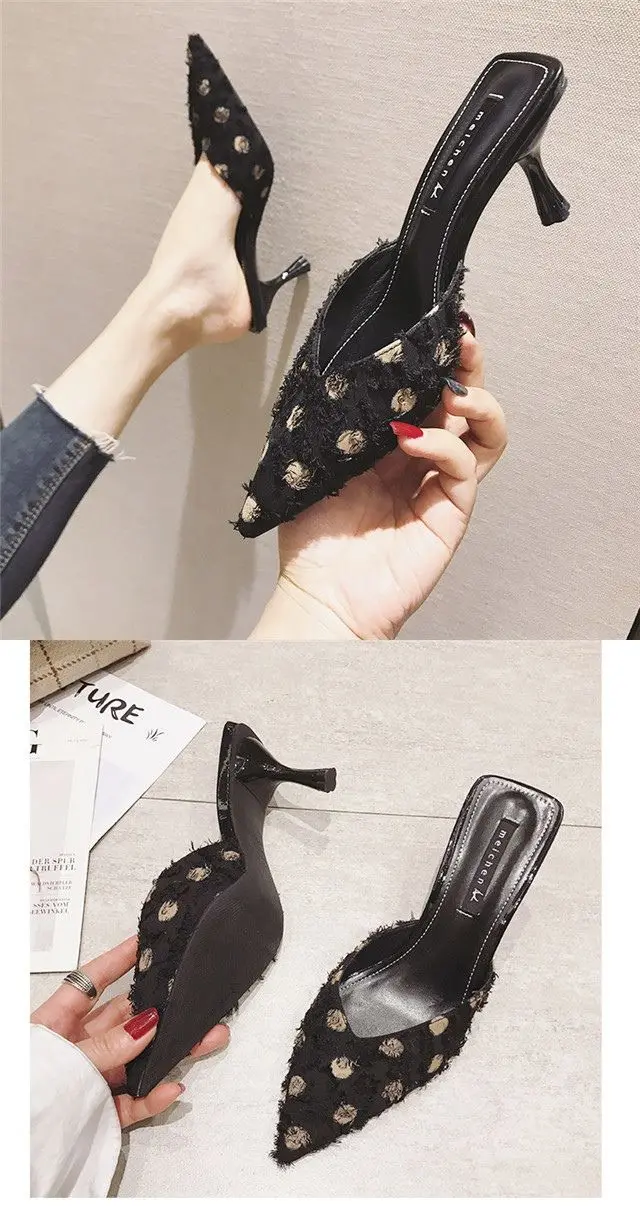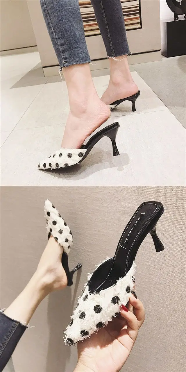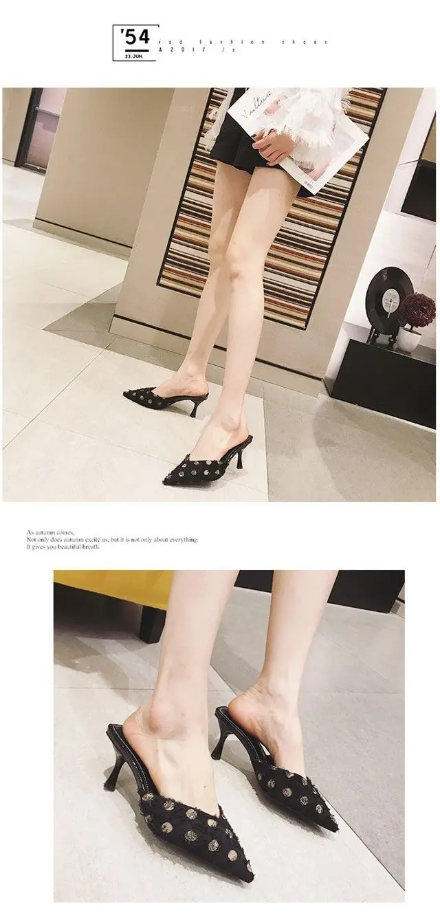 2021 spring and summer new Baotou wear half slippers French girl high heels stiletto sandals female