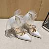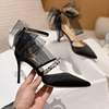 2022 Black Bowknot High Heel Shoes for Women New Fine Heel Strap Buckle Mesh Red Diamond Single Shoes New In Pumps For Women
