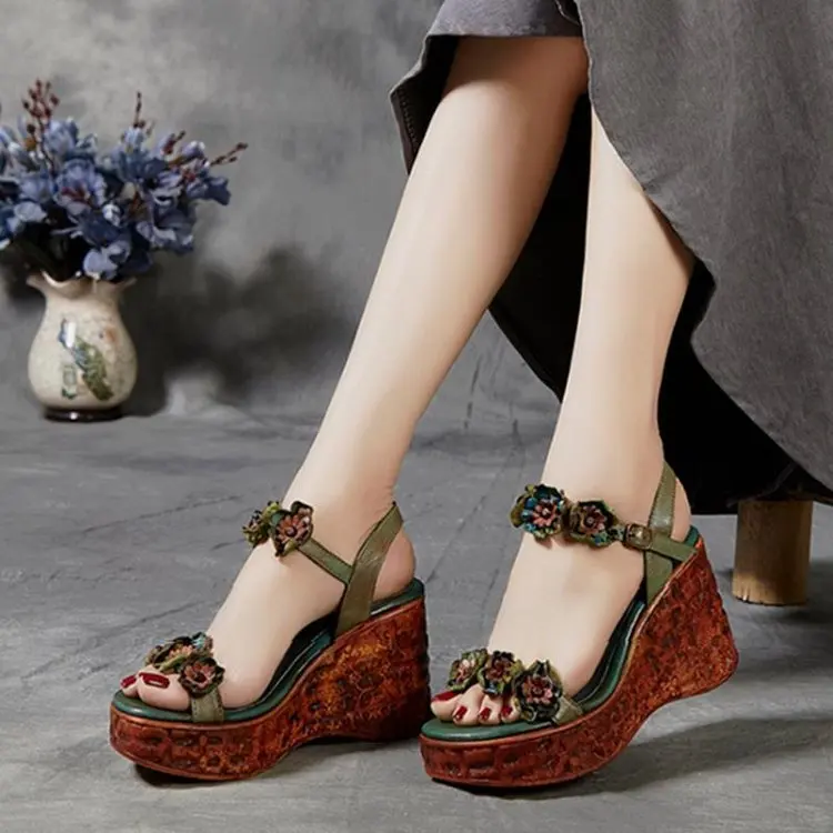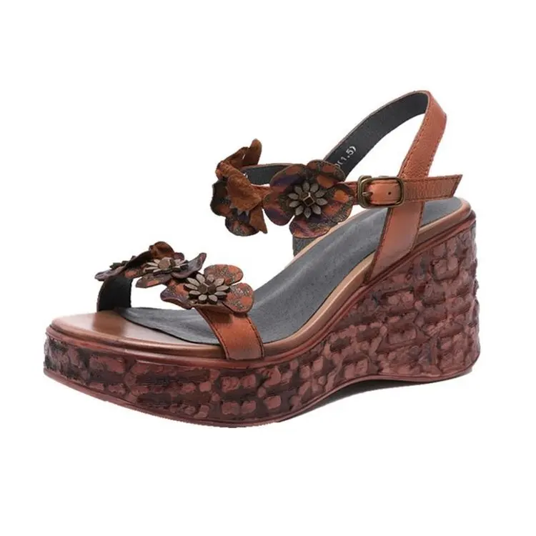 2022 Summer New Fashion Sandals Women's Handmade Leather Flower Ethnic Style Ladies Single Shoes Summer Sandals 35-39 Yards