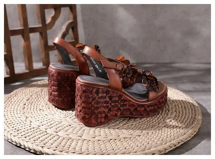 2022 Summer New Fashion Sandals Women's Handmade Leather Flower Ethnic Style Ladies Single Shoes Summer Sandals 35-39 Yards