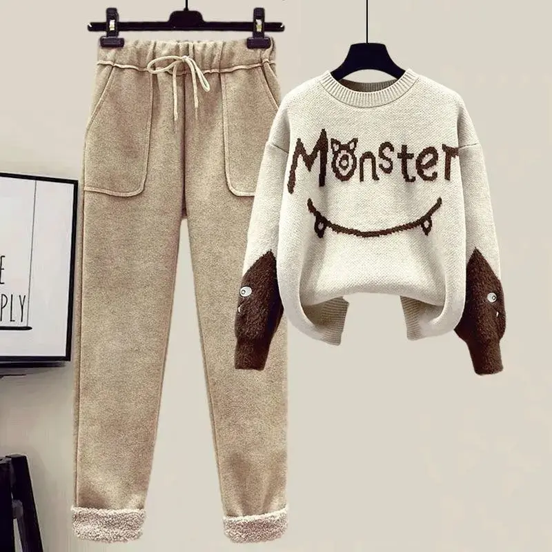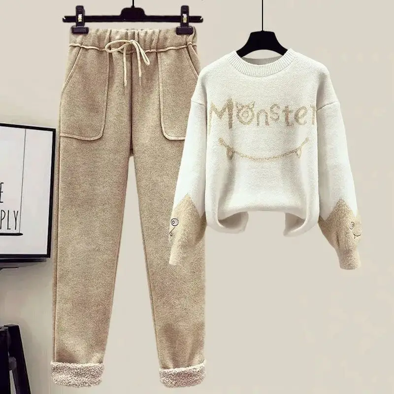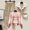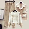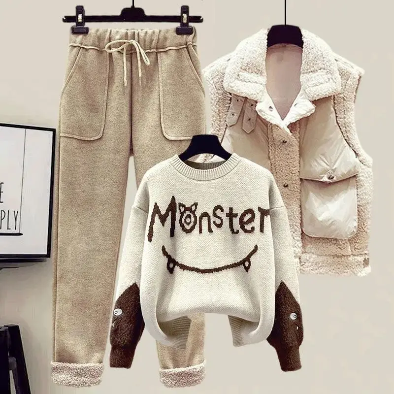 2022 Winter New Cashmere Vest Coat Embroidery Knitted Sweater Casual Trousers Three Piece Elegant Women’s Pants Set Outfit