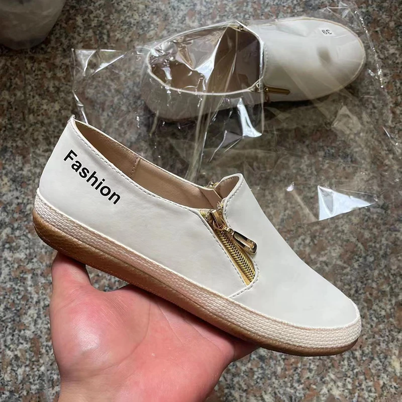 2022 Women Summer Vulcanized Shoes Double Zipper Solid Pu Leather Casual Ladies Sneakers Canvas Shoes Fashion Walking Footwear