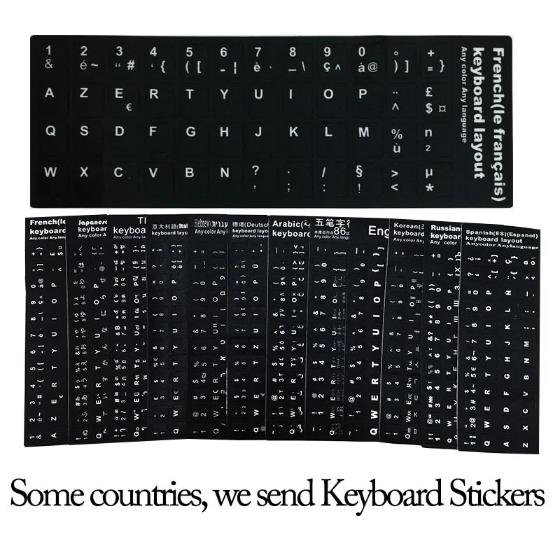— Our keyboard is QWERTY English standard version, but we will send keyboard stickers of other languages below as a gift. If you need it, just leave us a message. Keyboard stickers: Russian, Spanish, French, German, Italian, Hebrew, Arabic, Turkish, Thai, Japanese, Korean.