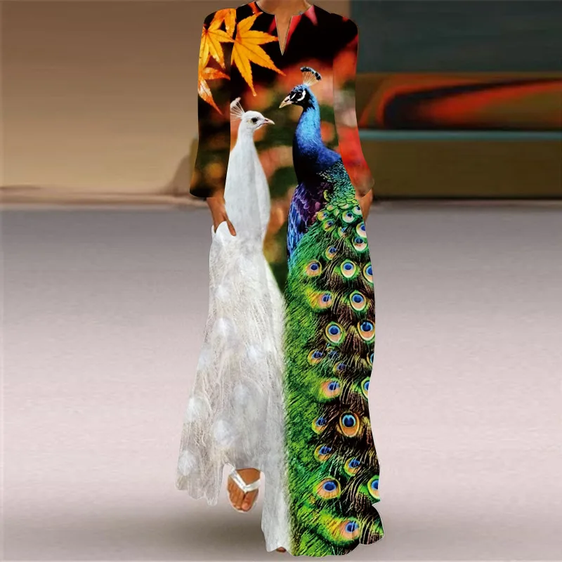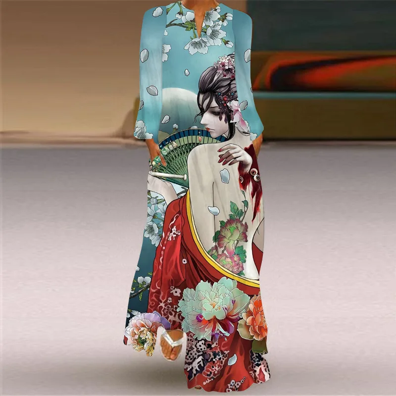 2023 Autumn New Fashion V-neck Long Sleeve Maxi Dress Women 3D Printing Pullover A-line Party Dress Ladies Casual Boho Vestidos