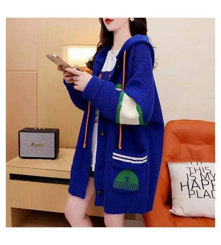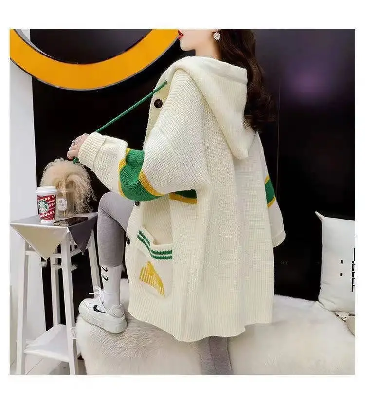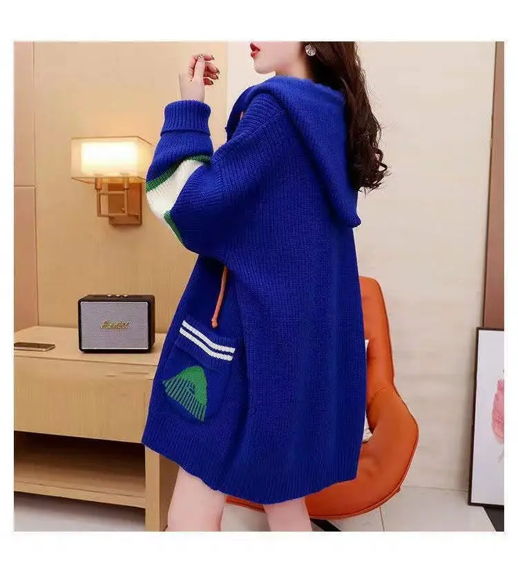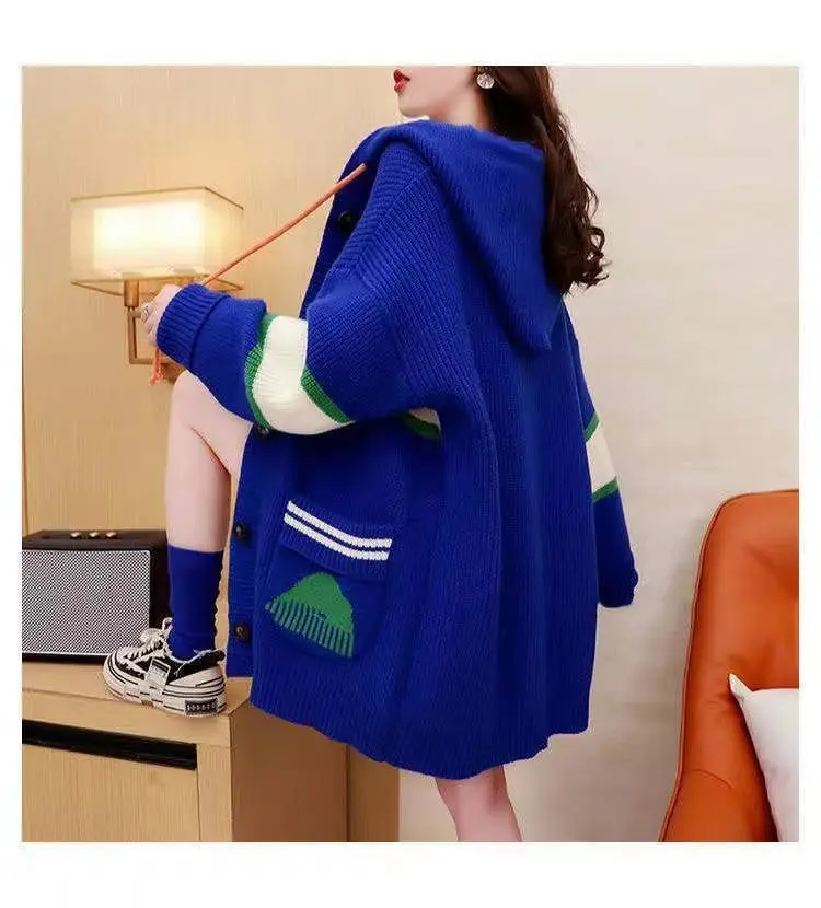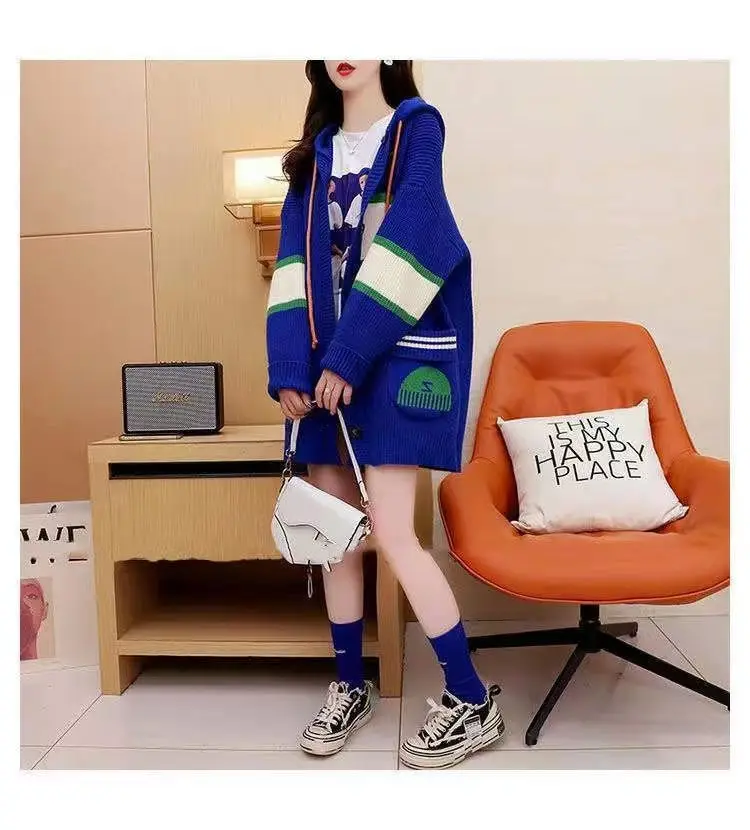 2023 Autumn/Winter Korean Edition New Cardigan Hooded Coat Sweater Loose and Thickened Knitted Sweater Trend