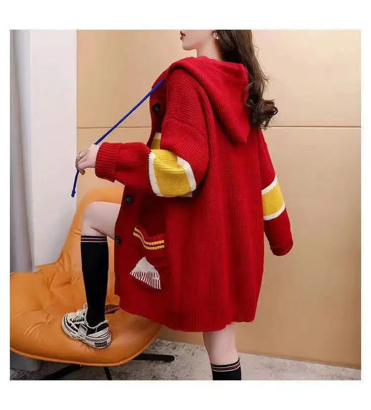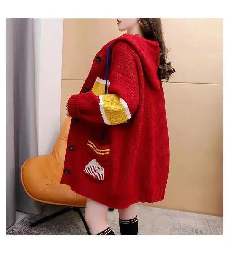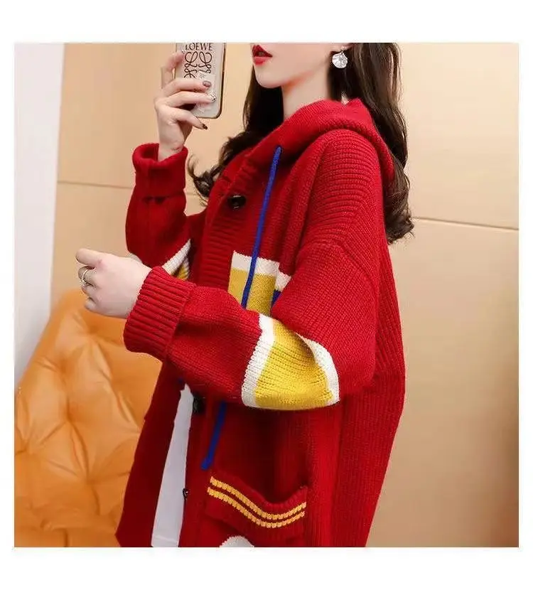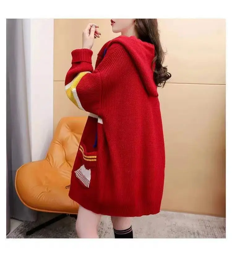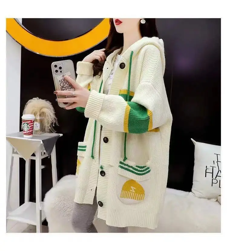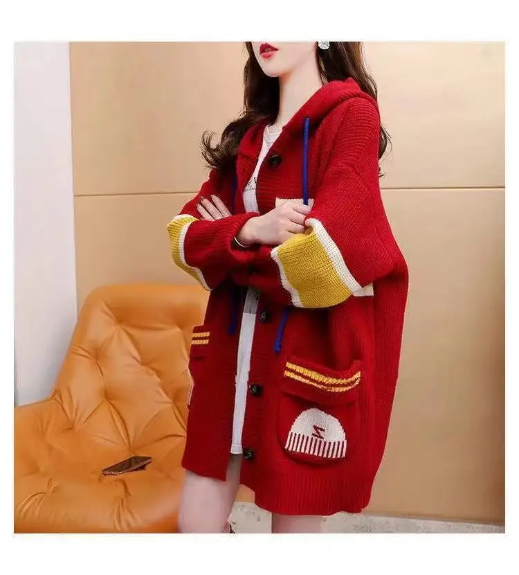 2023 Autumn/Winter Korean Edition New Cardigan Hooded Coat Sweater Loose and Thickened Knitted Sweater Trend
