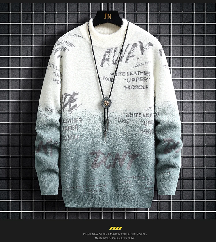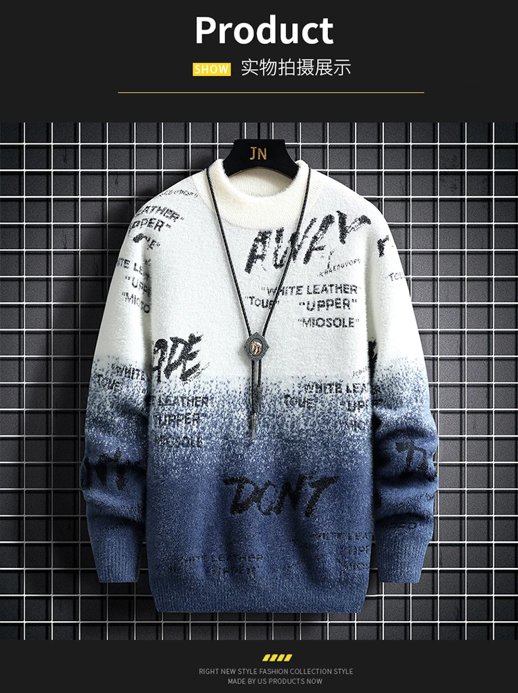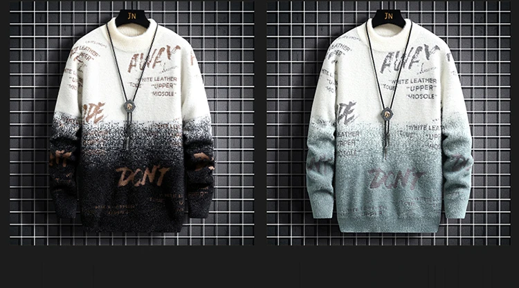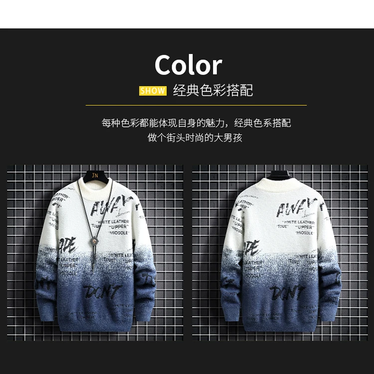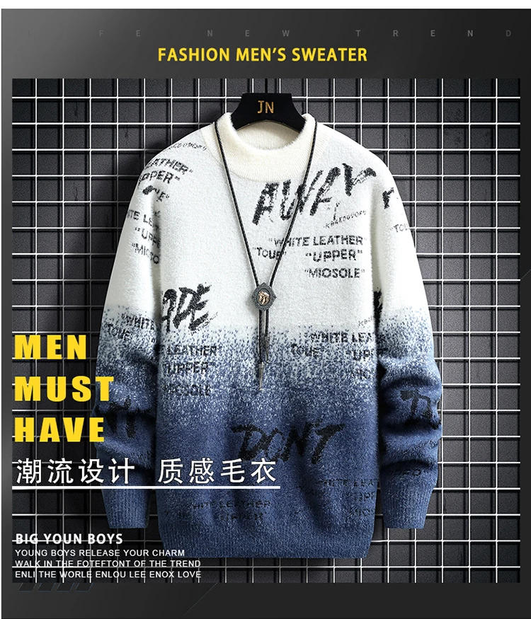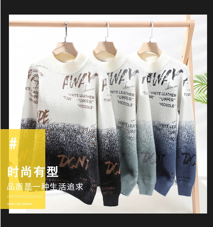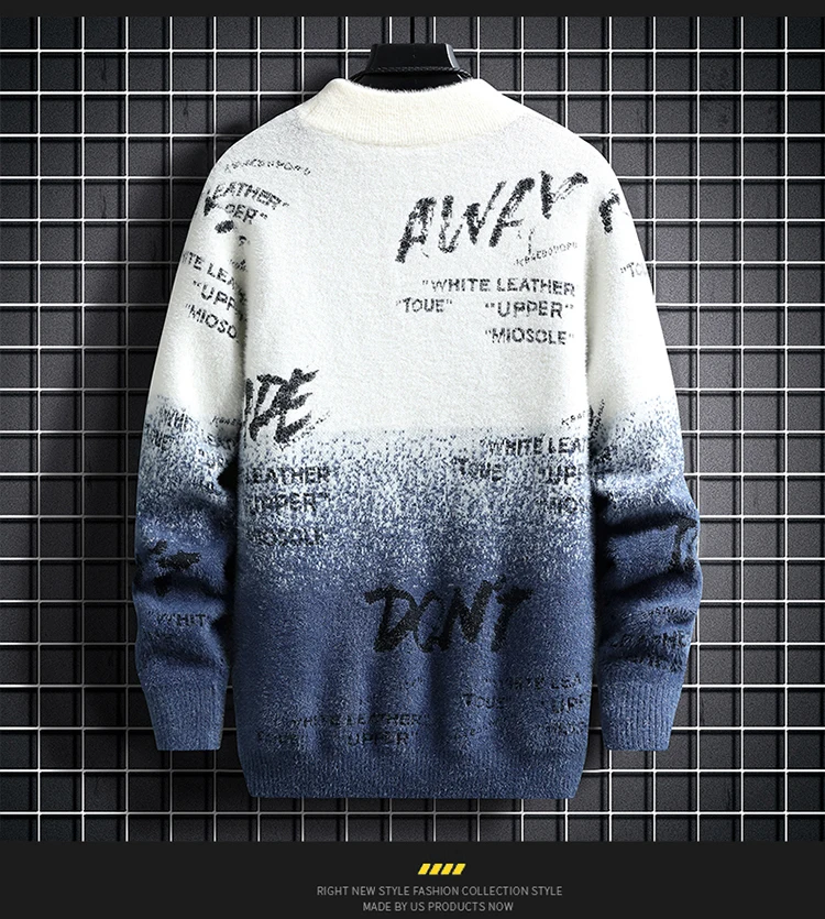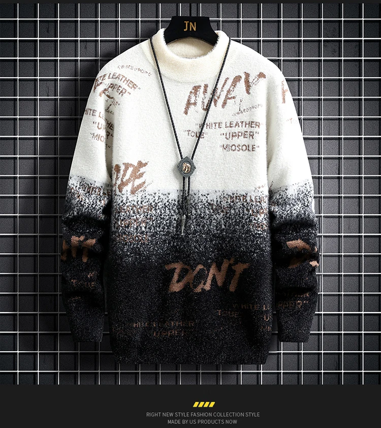 2023 New Fall Luxury Cashmere Turtleneck Mens Sweaters Thick Warm Personality Letter Sweater Men Harajuku Male Pullovers