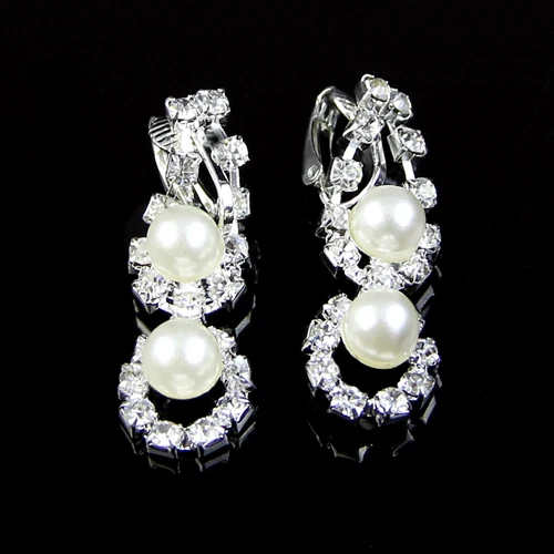 Bridal Wedding Rhinestone Pearl Plated Necklace Earrings Chic Crystal Jewelry set