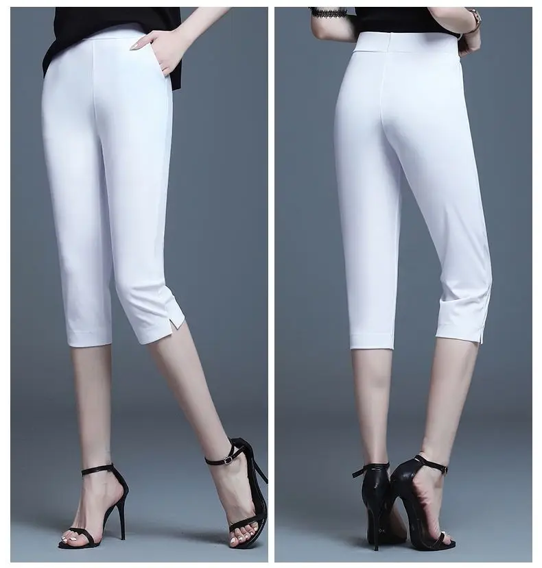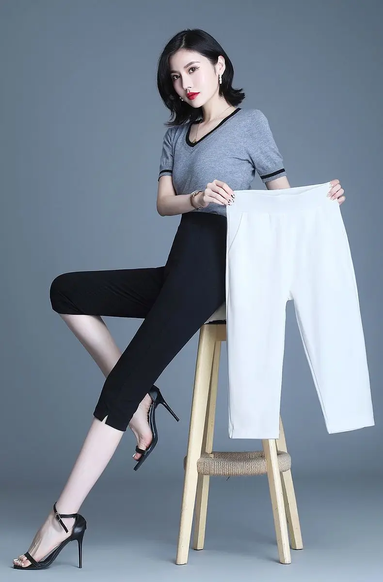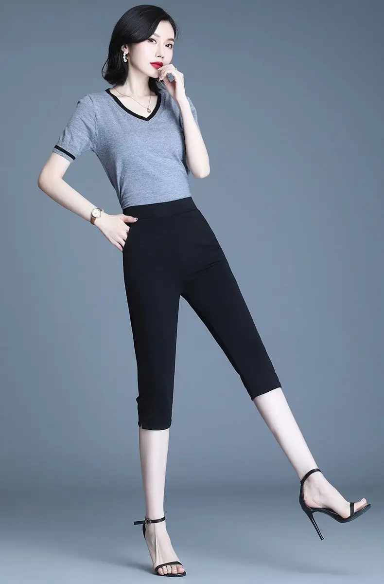 2023 New Summer Office Lady Simplicity Pocket Solid Color High Waist Straight Ladies Casual Patchwork Elastic Waist Casual Pants