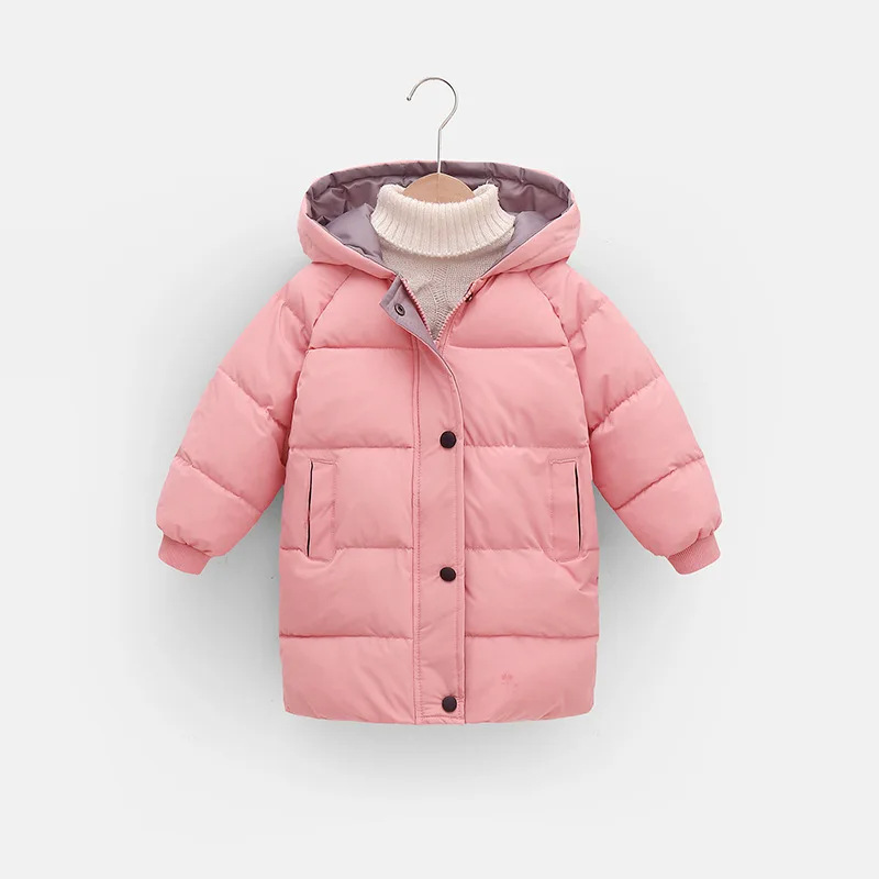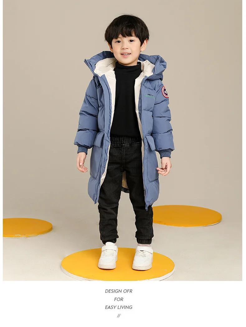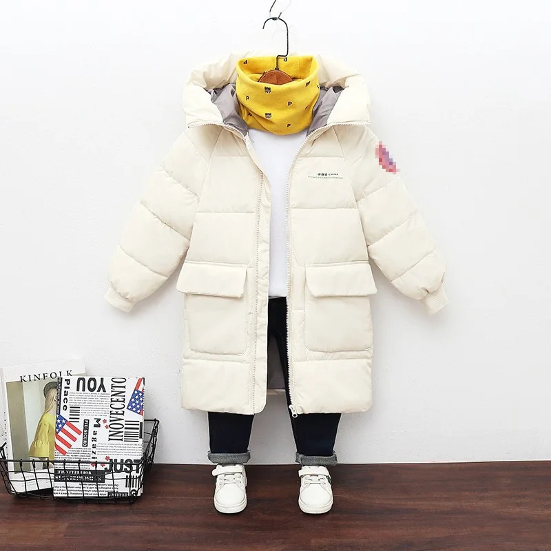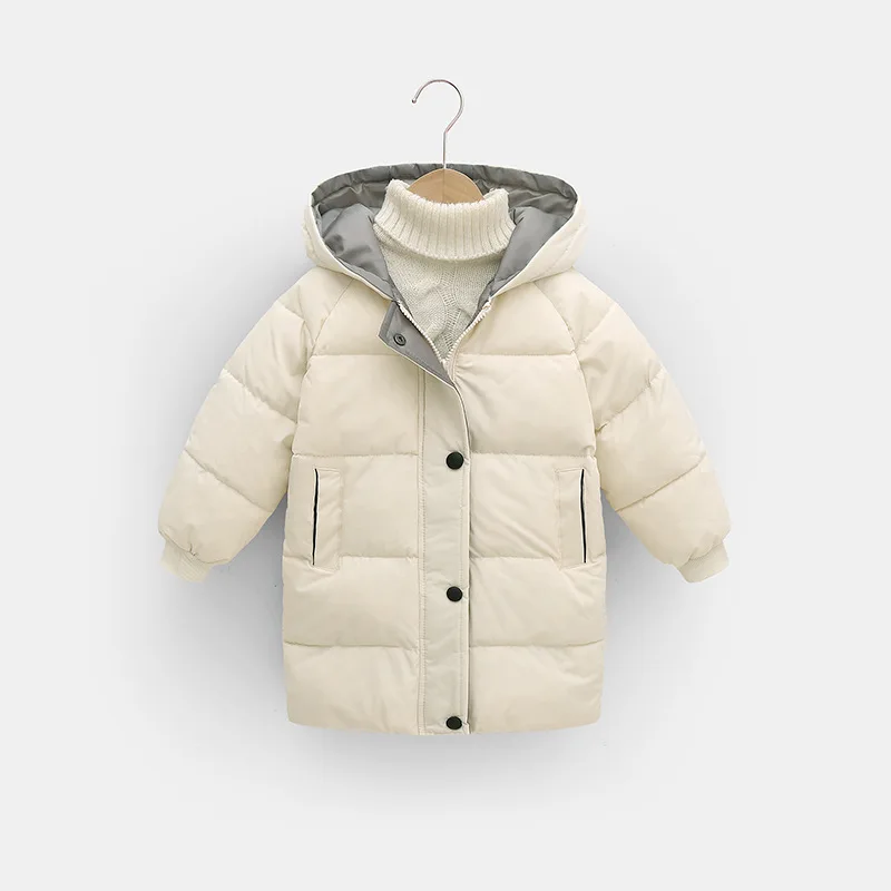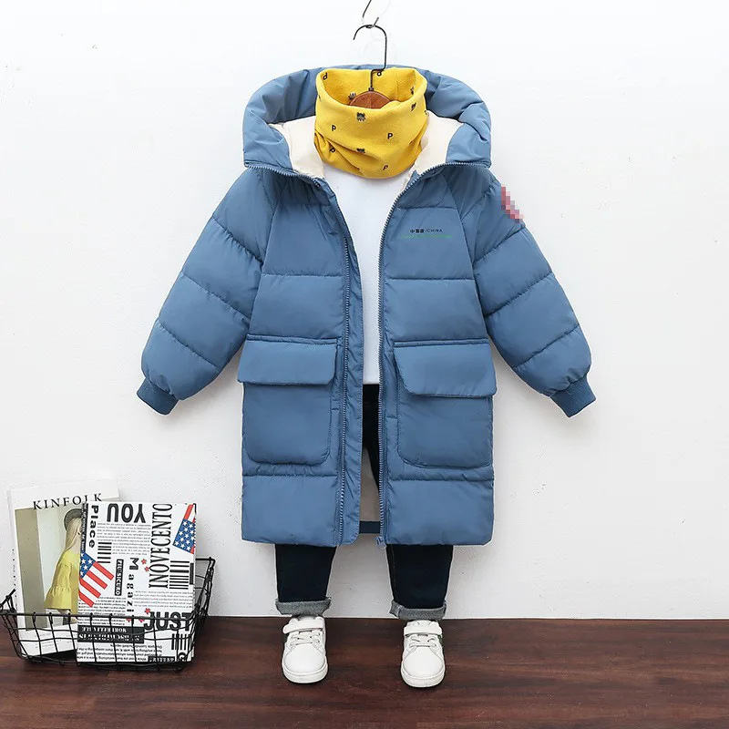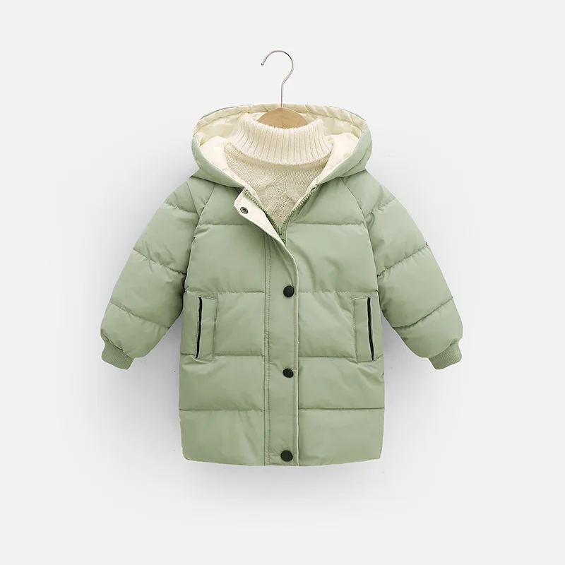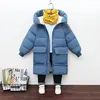 2023 New Winter Boys Jacket Solid Color Mid-Length Keep Warm Cold Protection Hooded Down Cotton Windbreaker Coats For 3-10 Years