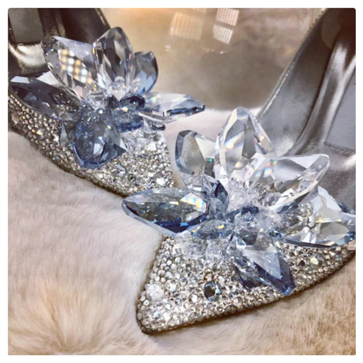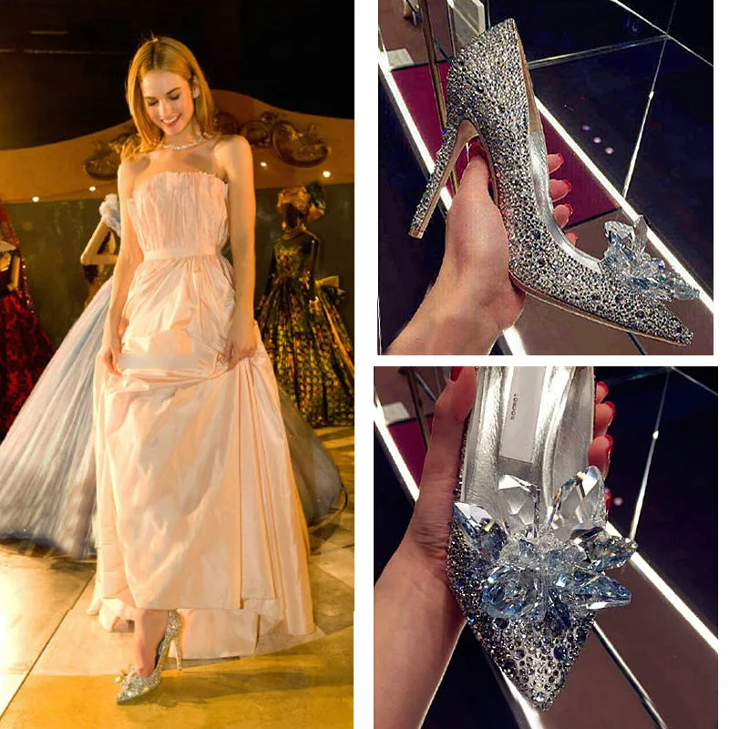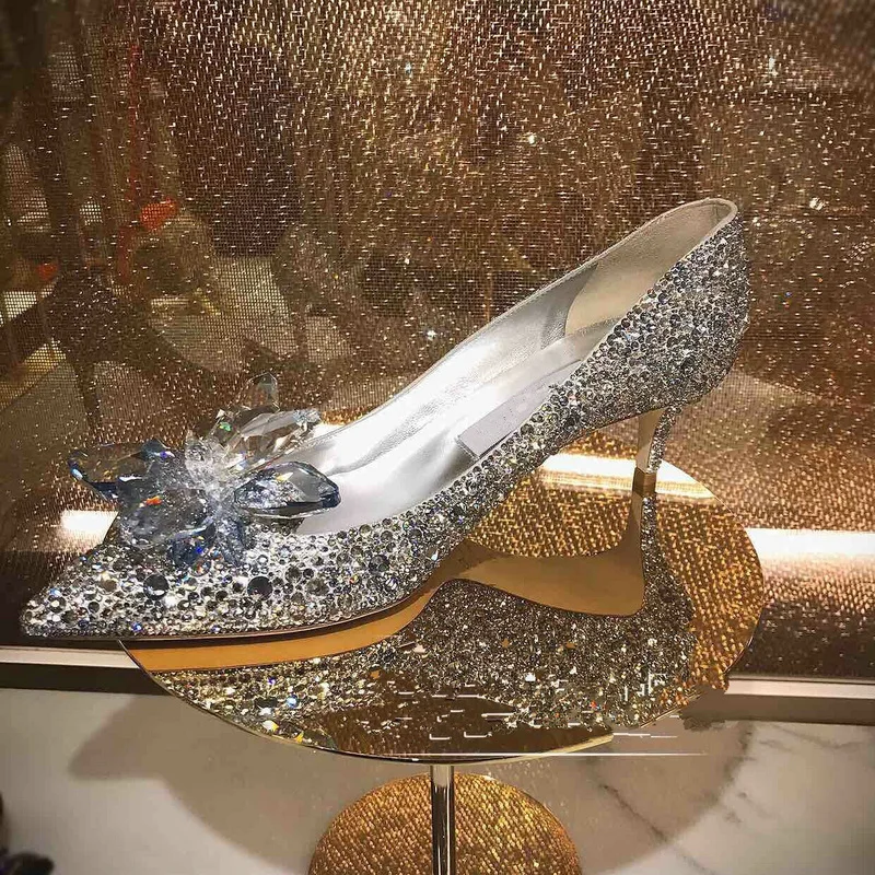 2023 Newest Cinderella Shoes Rhinestone High Heels Women Pumps Pointed toe Woman Crystal Party Wedding Shoes 5cm/7cm/9cm