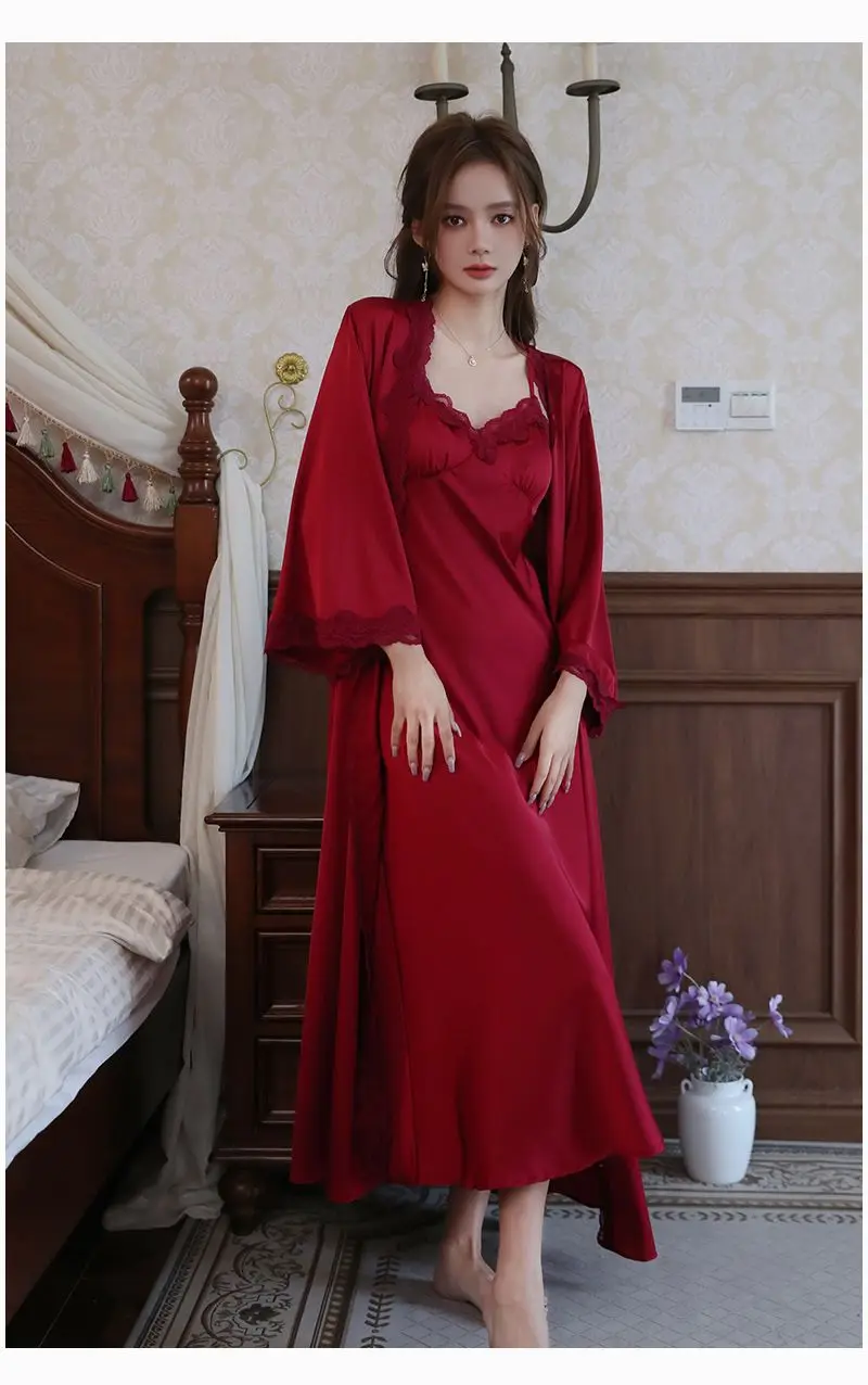 2023 Spring Red Silk Strap Dress Women Casual Korean Elegant Long Dress Patchwork Lace Midi Dresses Women Fashion Party V Neck