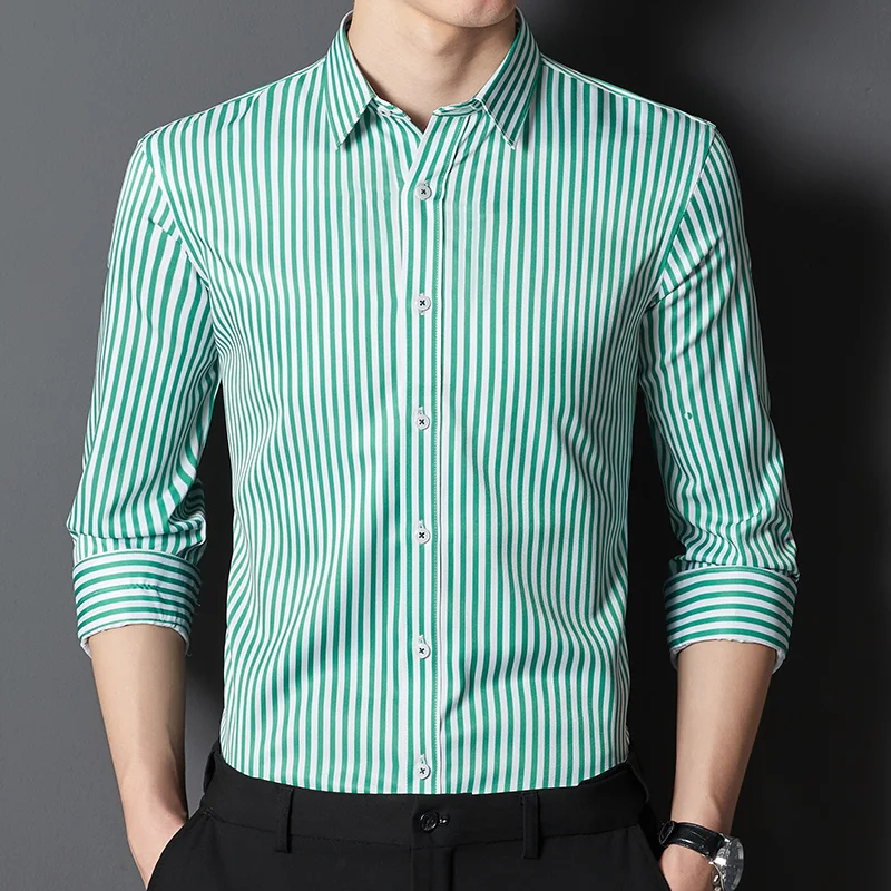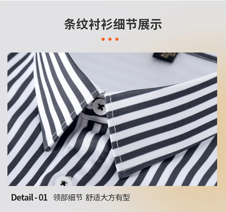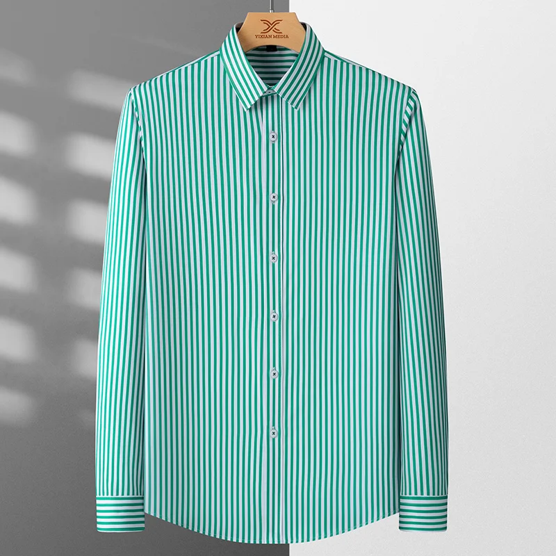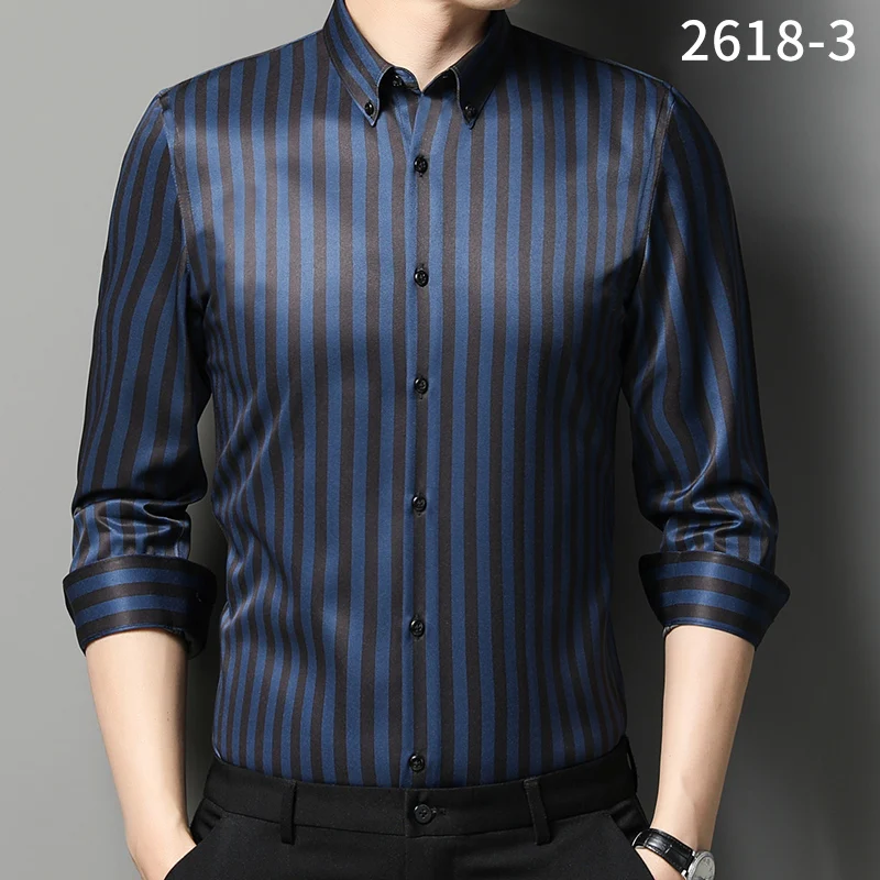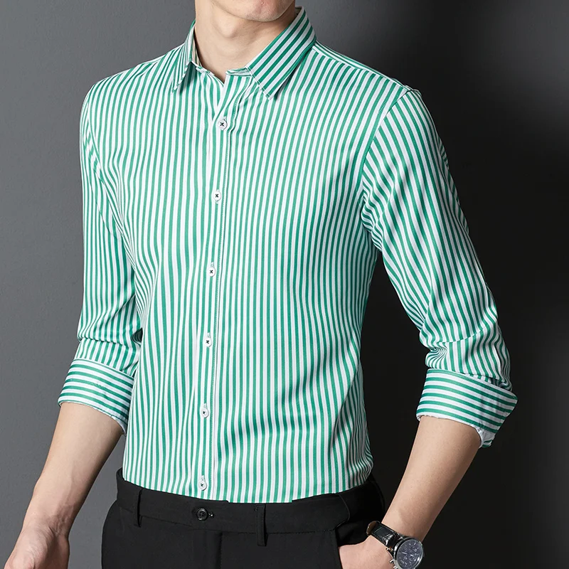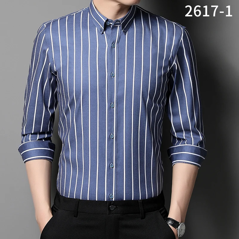 2023 Top Quality No Ironing Stretch Men Dress Shirt Long Sleeve No Trace Soft Cozy Pocket-less Formal Regular Fit Striped Shirt