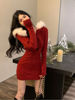 2023 Winter Knitted Sweater Dress Hooded Women Slim Bodycon Y2k Mini Dress Faux Fur Female One Piece Dress Korean Elegant