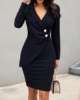 2024 Autumn Winter Fashion Midi Dress Office Lady Long Sleave Slim Dresses Elegant Bodycon Work Business Pencil Solid Dress