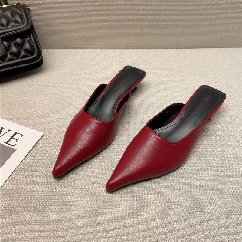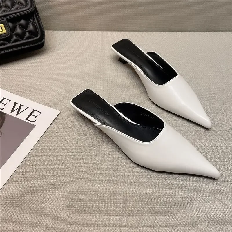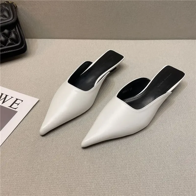 2024 New Low Heel Slippers Summer Close Toe Outdoor Mules Casual Pumps Street Style Mum‘s Sandal Slip on Half Slippers Loafers