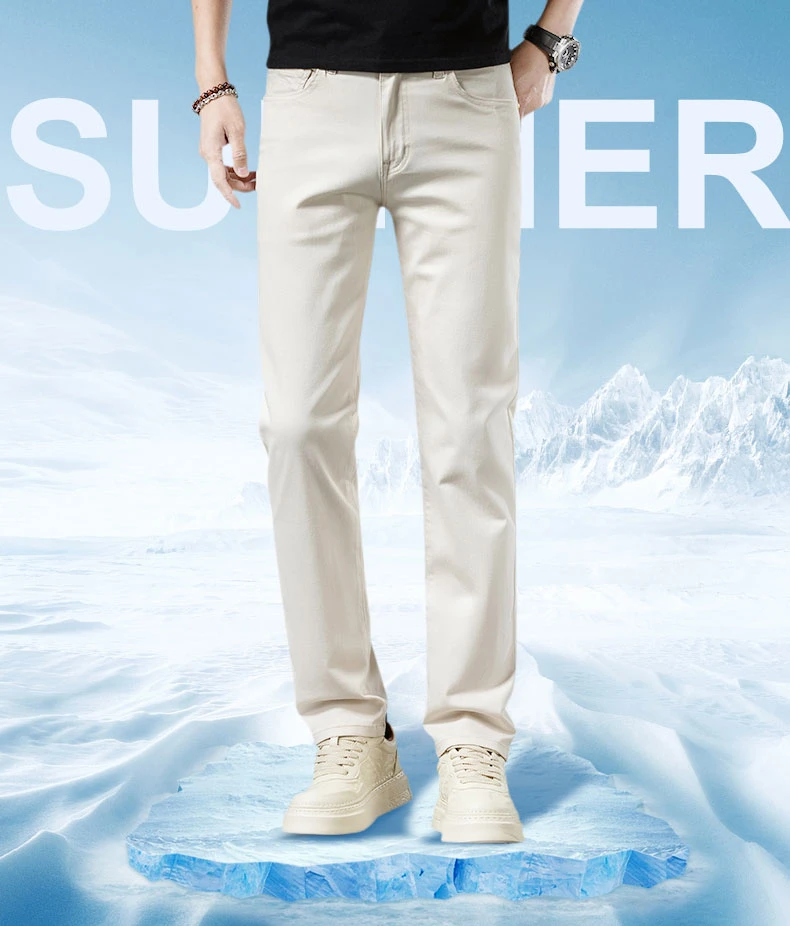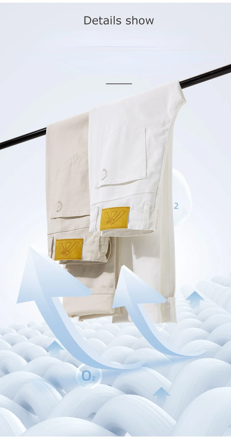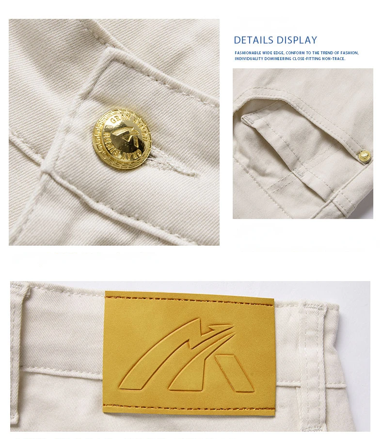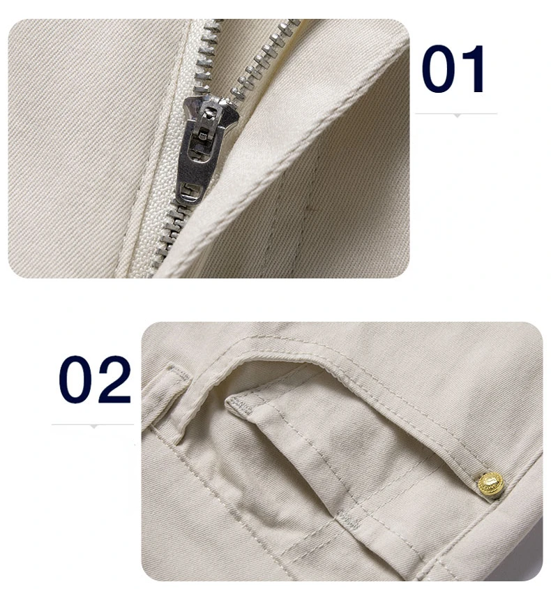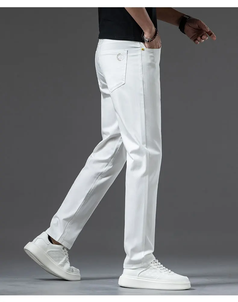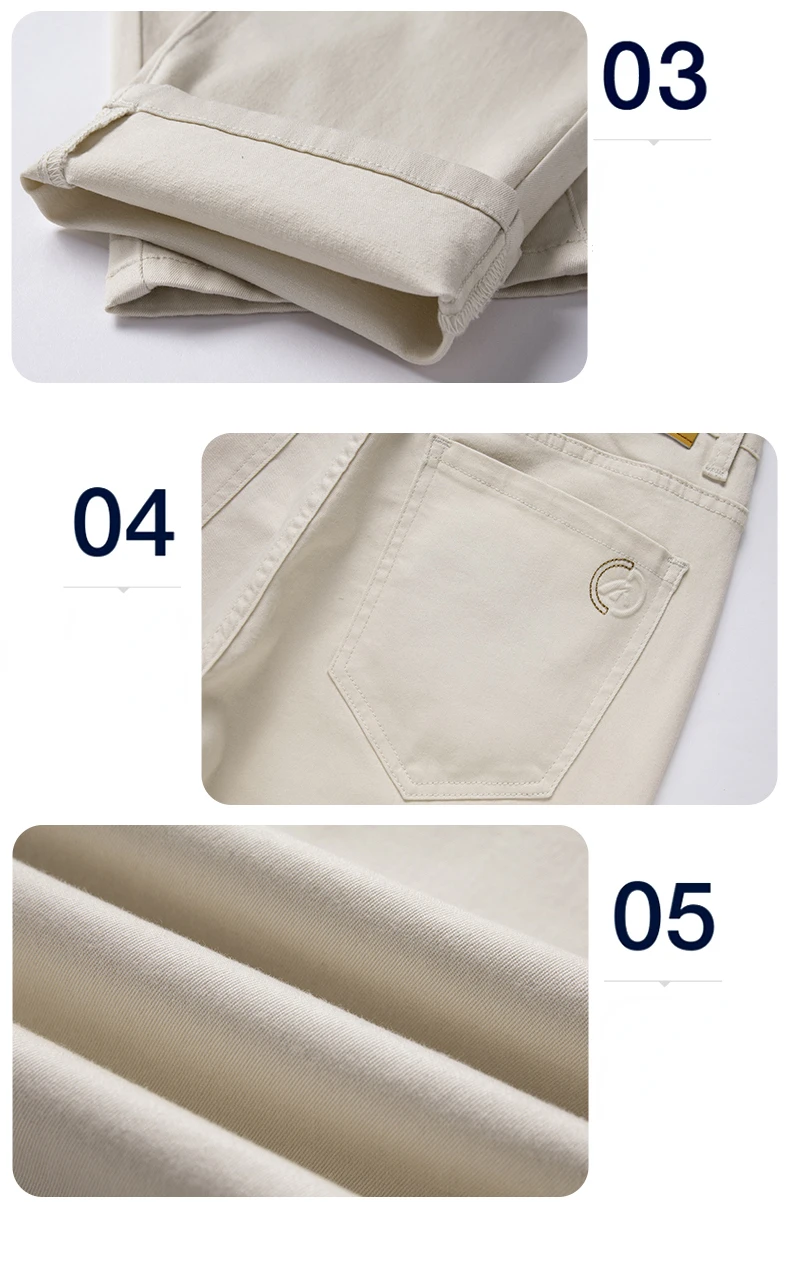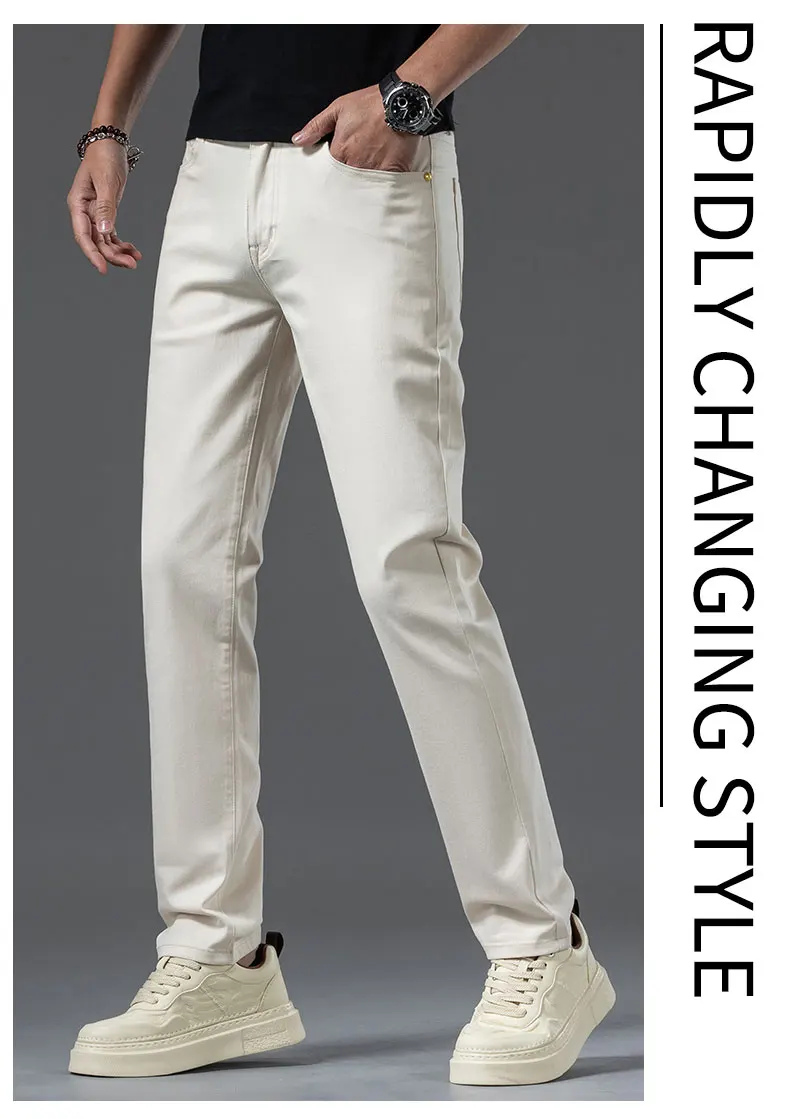 2024 New Men’s Khaki White Cotton Stretch Slim Smart Jeans Casual Straight Business Fashion Beige Brand Denim Trousers