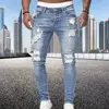 2024 New Ripped Skinny Jeans Men Vintage Wash Elastic Biker Holes Denim Pants Casual Slim Joggers Trousers Distressed Streetwear