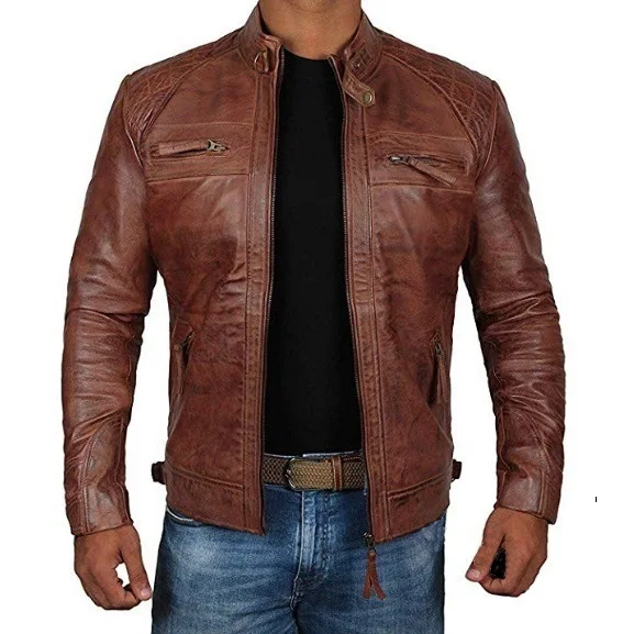 2024 New Spring and Autumn Men’s Fashion Handsome Leather Coat Stand Collar Punk Motorcycle Leather Jacket Faux Leather