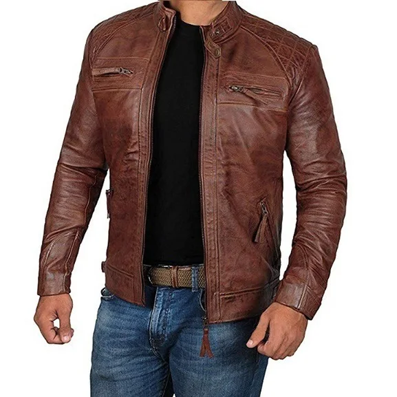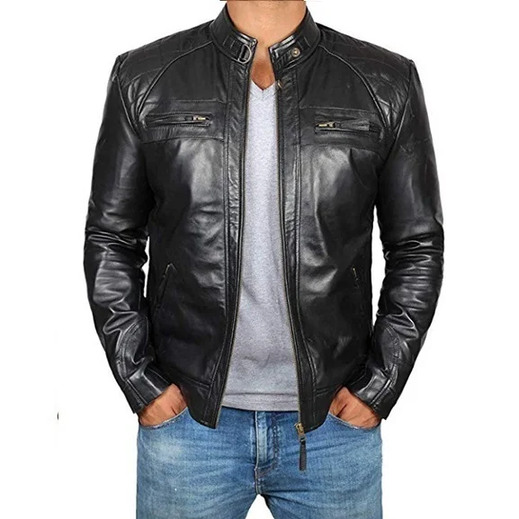 2024 New Spring and Autumn Men’s Fashion Handsome Leather Coat Stand Collar Punk Motorcycle Leather Jacket Faux Leather