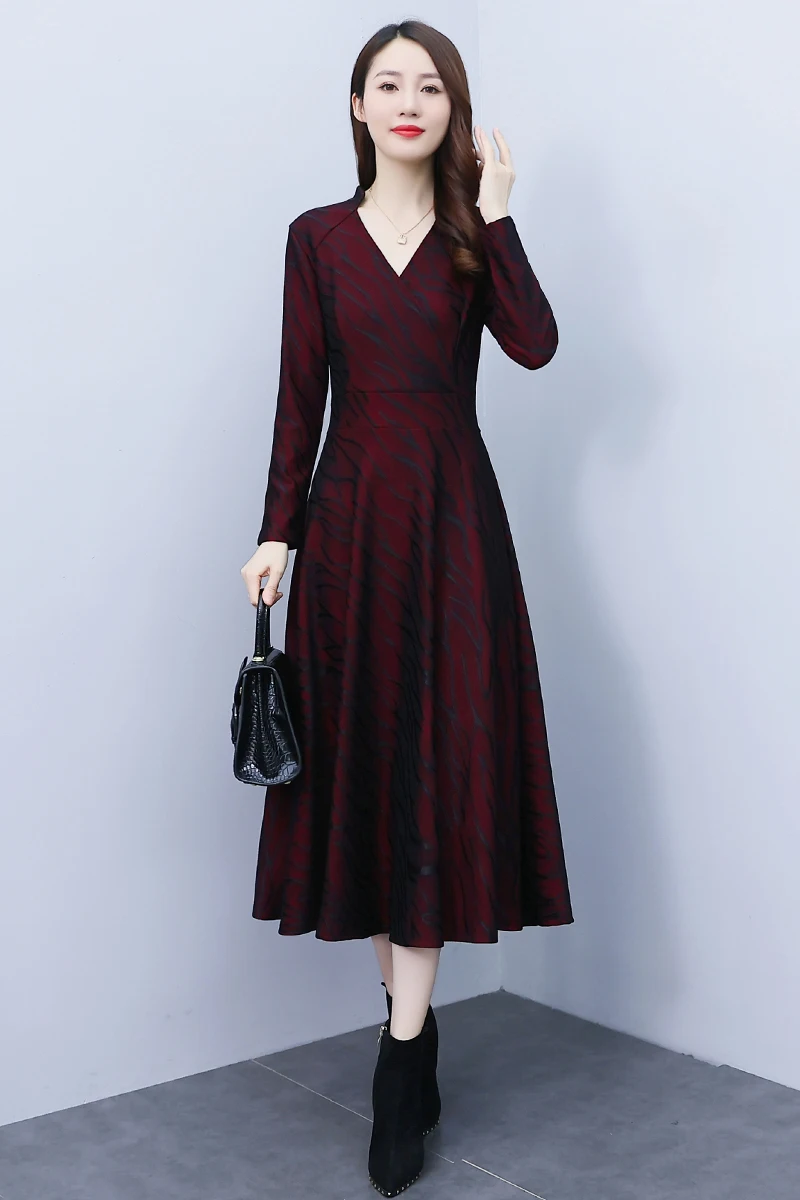 HUTI WJWYL New Arrival High Quality Red Striped Luxury Party Evening Dress Autumn Winter Velvet Thick Warm Long Dresses Women Elegant Bodycon Casual Prom Dress