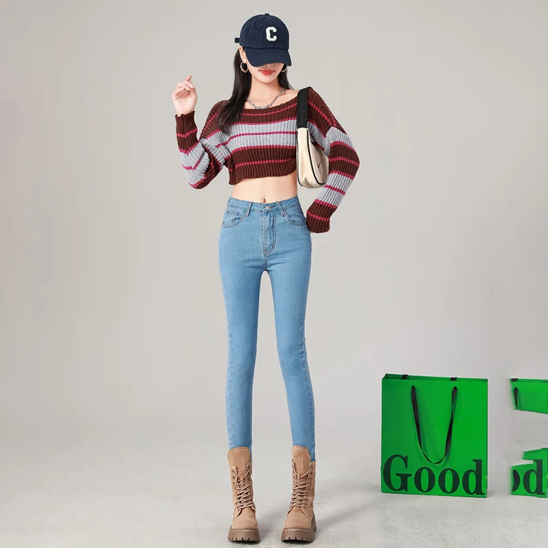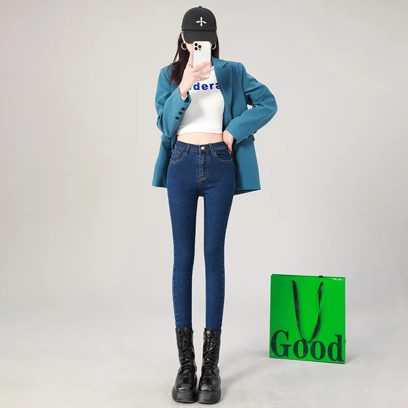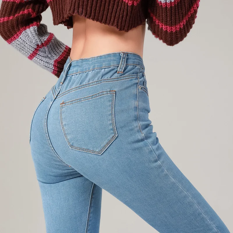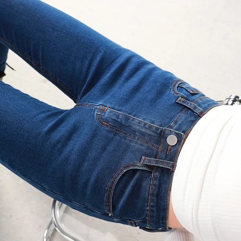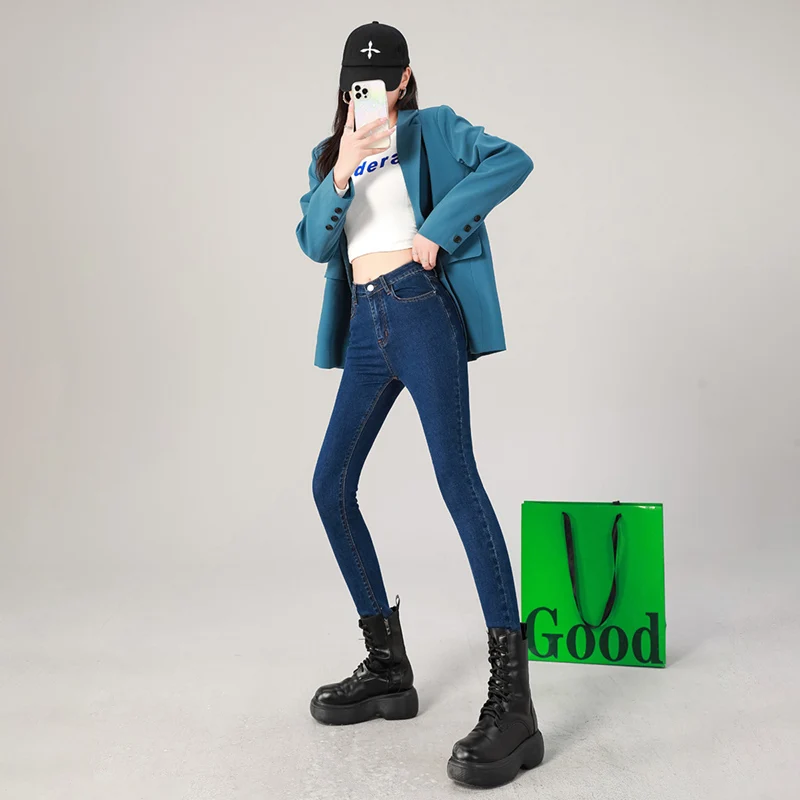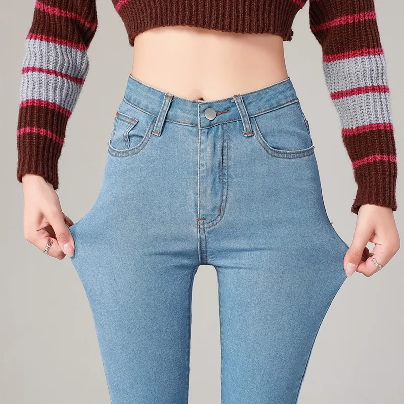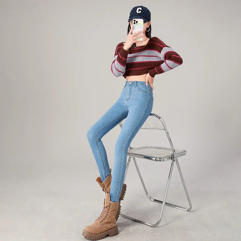 2024 Sexy Women Blue Slim Skinny Denim Jeans High Waist Elastic Mom Jeans Stretch Washed Pencil Pants Streetwear Tight Trousers