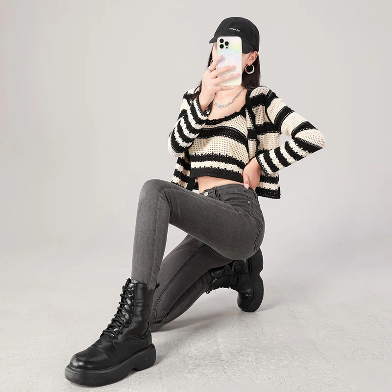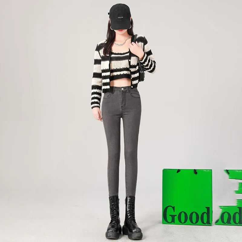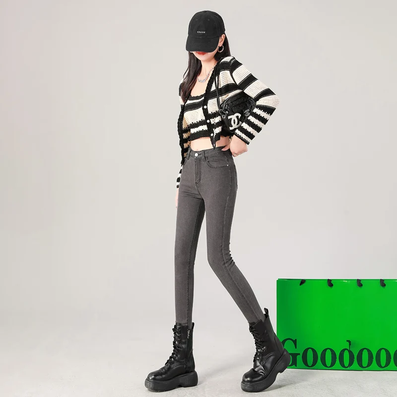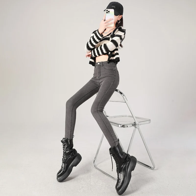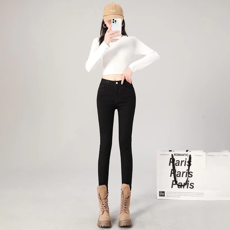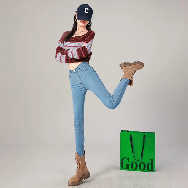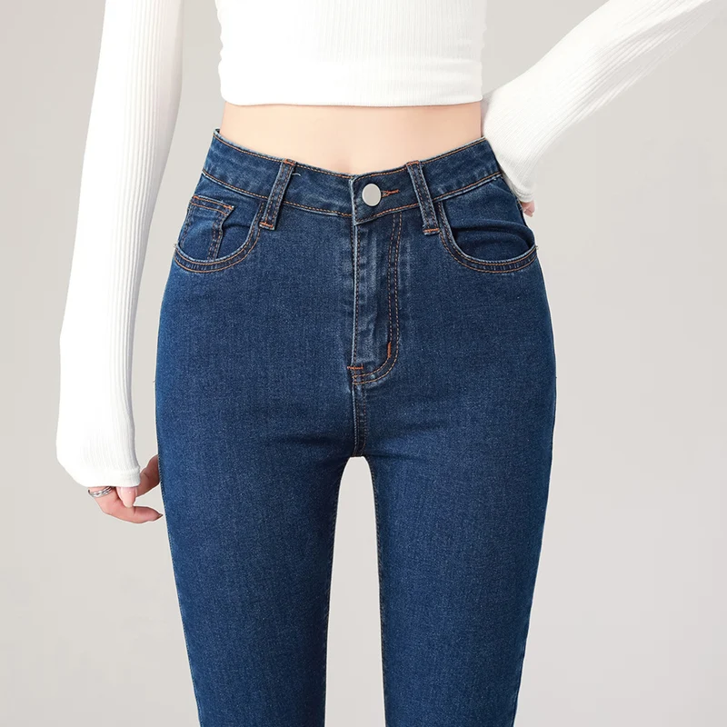2024 Sexy Women Blue Slim Skinny Denim Jeans High Waist Elastic Mom Jeans Stretch Washed Pencil Pants Streetwear Tight Trousers