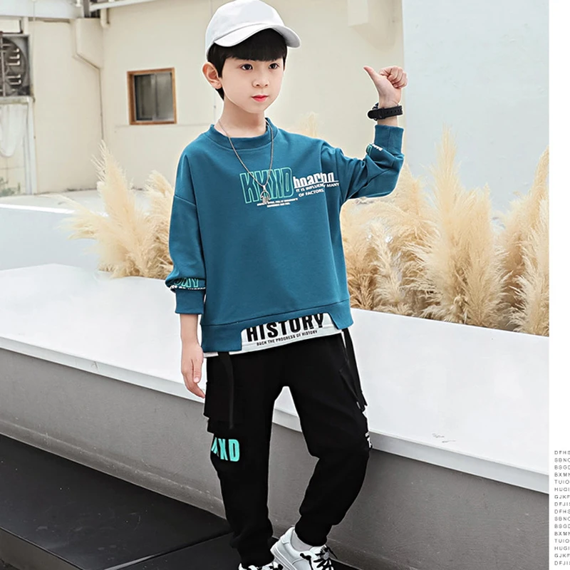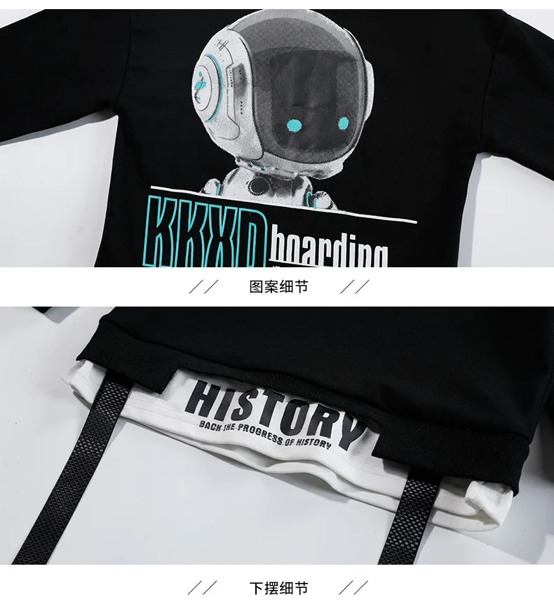 2024 Spring Autumn Boys Clothing Set Cartoon Astronaut Printing Pullover+Pants 2Pcs For 5-12 Years Kids Handsome Sports Suit