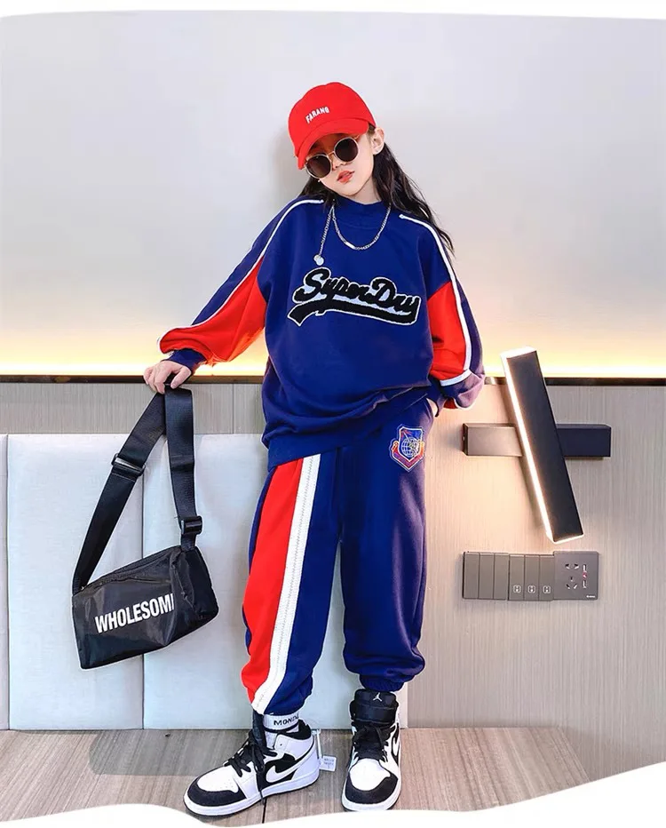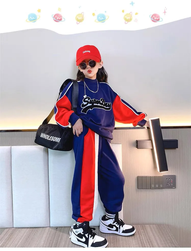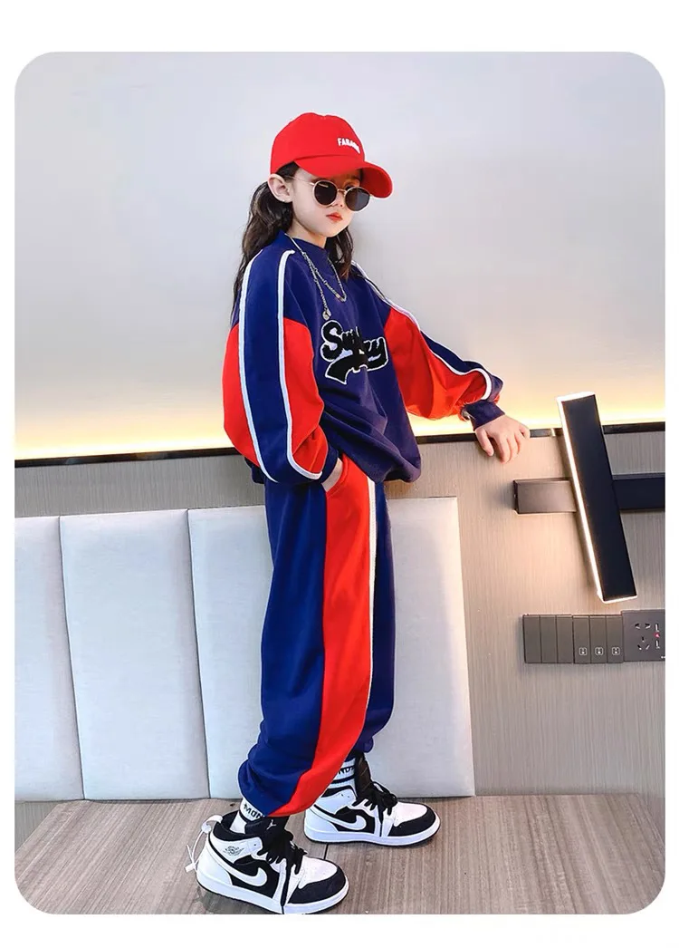 2024 Spring Autumn Kids tracksuit Children set Girls Clothes T-Shirt + straight wide leg Cargo Pants Teenager 6 7 10 11 12 year
