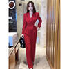 2024 Spring New Loose and High end Lnternet Popular Popular Fashion Jumpsuit Women’s Style V-neck Waist Waist Slimming Jumpsuit