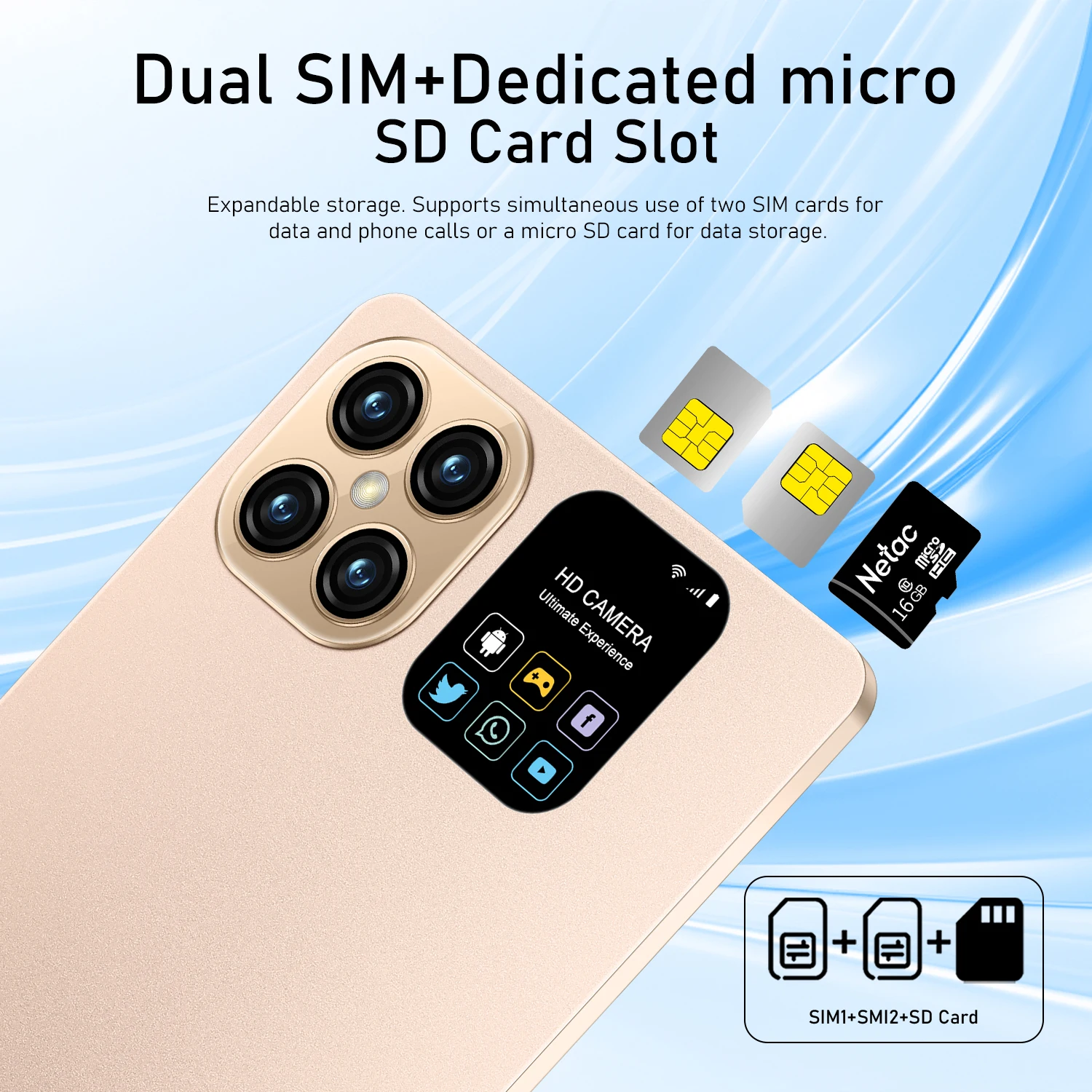 3.Standby:One sim+SD card/Two sim card