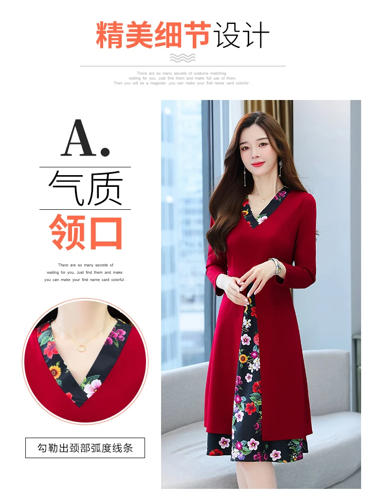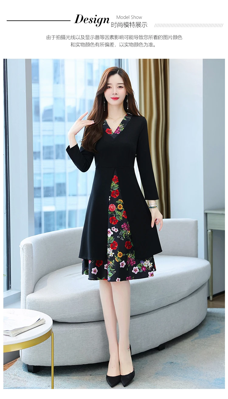 HUTI WJWYL New Arrival High Quality Vintage Print Chiffon Long Sleeve Dress Autumn Winter Casual 3XL Plus Size Black Bodycon Dress Elegant Women Party Vestidos