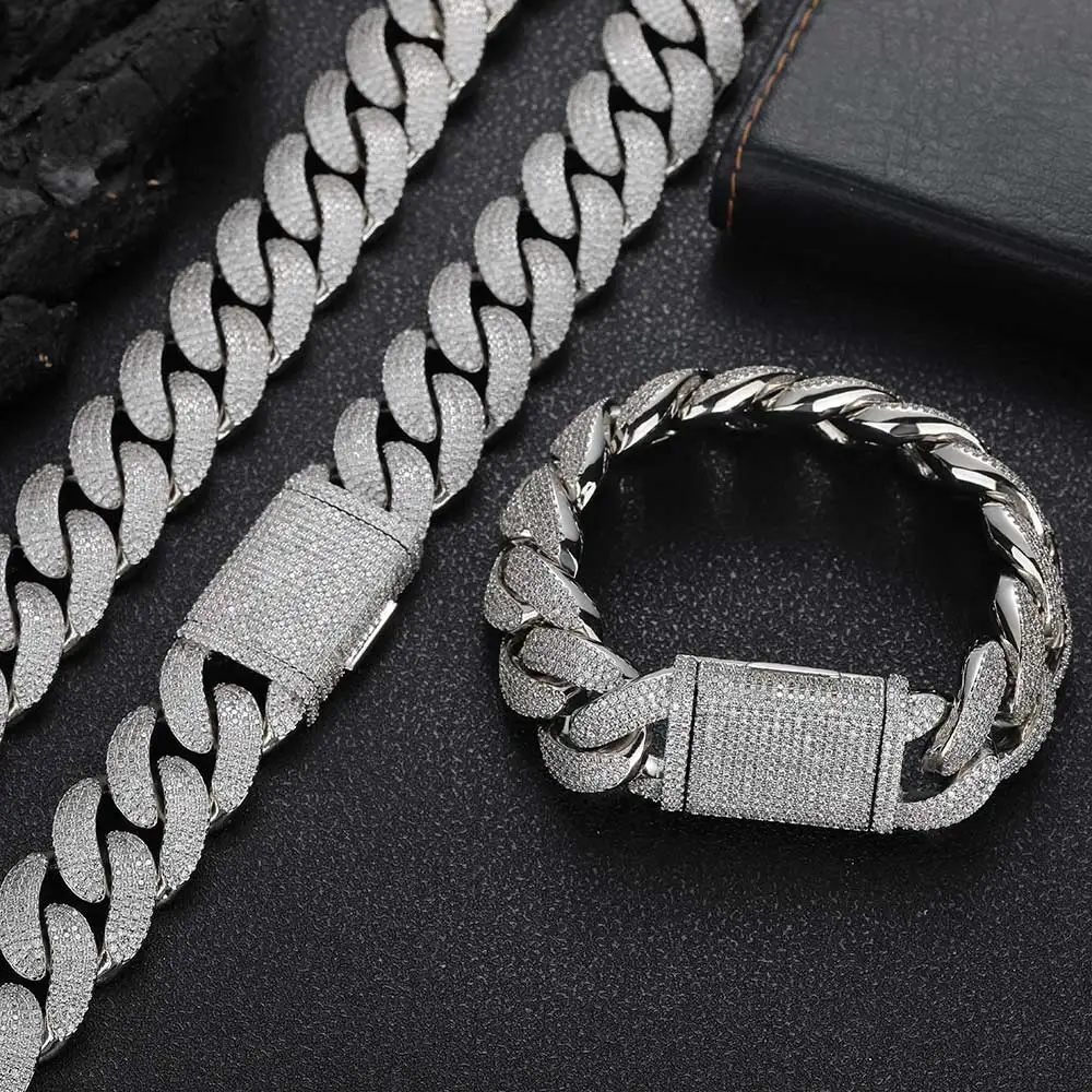 | 20mm 4 Rows Hip Hop Iced Out Cuban Link Necklace Miami Bling Chain CZ Luxury Choker Chain Jewelry Gift for Men | |