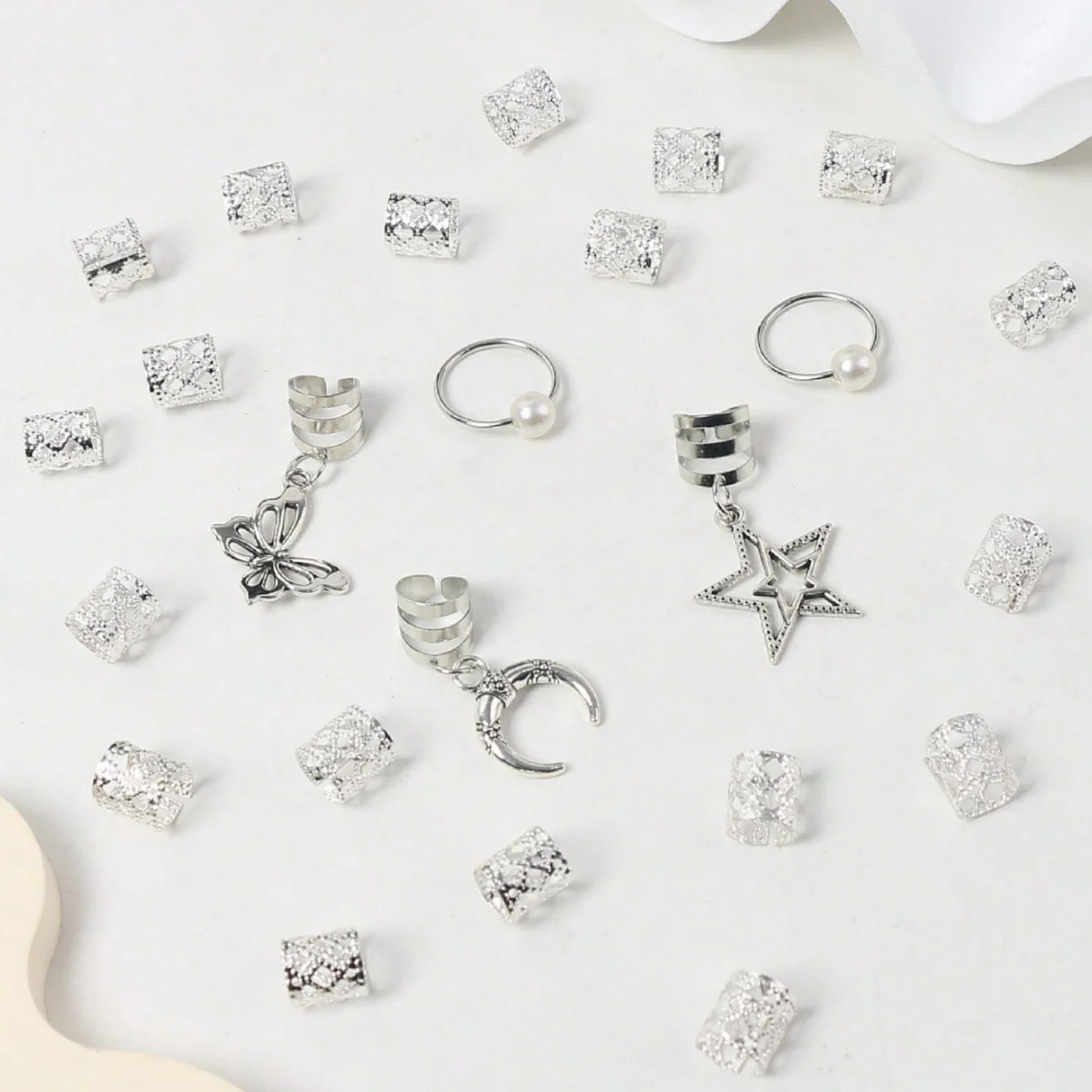 25pcs Dreadlock Hair Rings Adjustable Cuffs Clip Hair Braids Dirty Braids Bead Hairpin hair accessories Headwear for women Girls