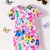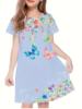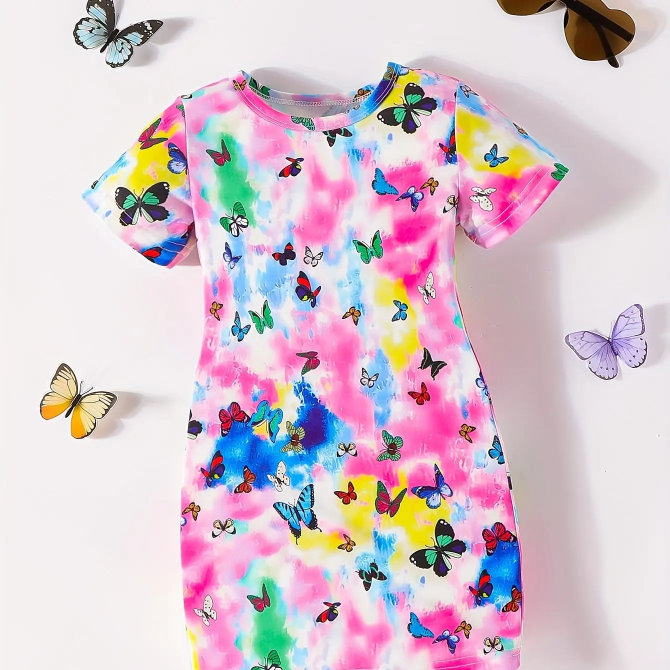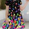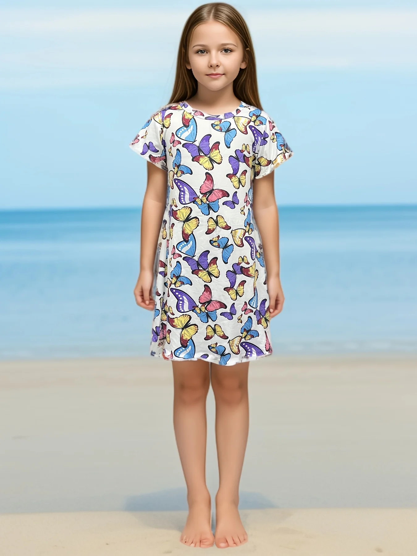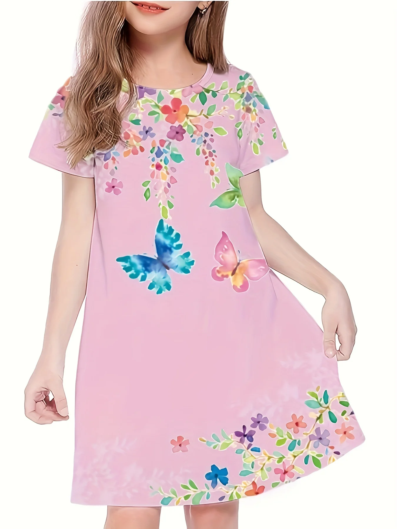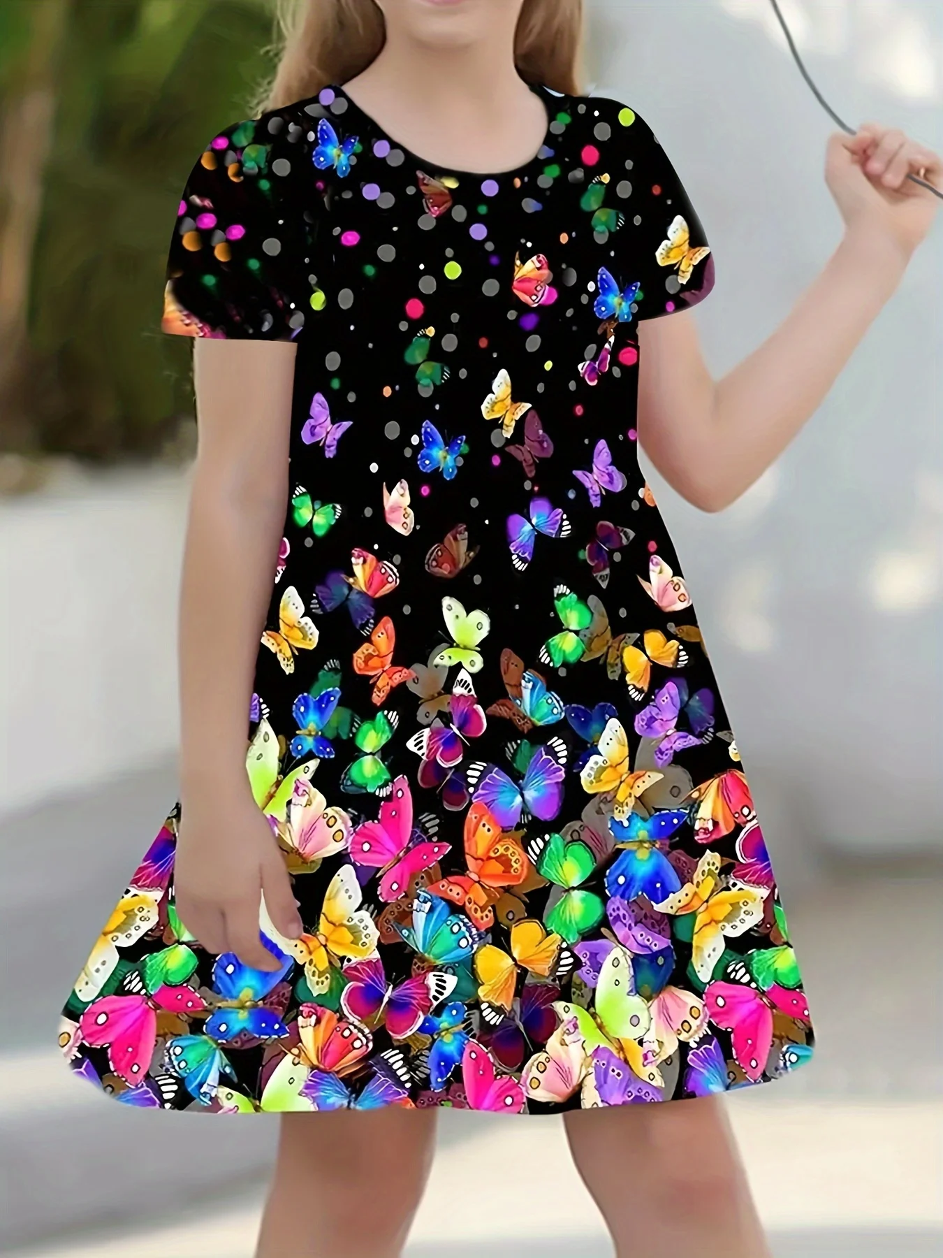 3-14 year old girl butterfly small fresh 3D printed short sleeved dress loose and comfortable party dress