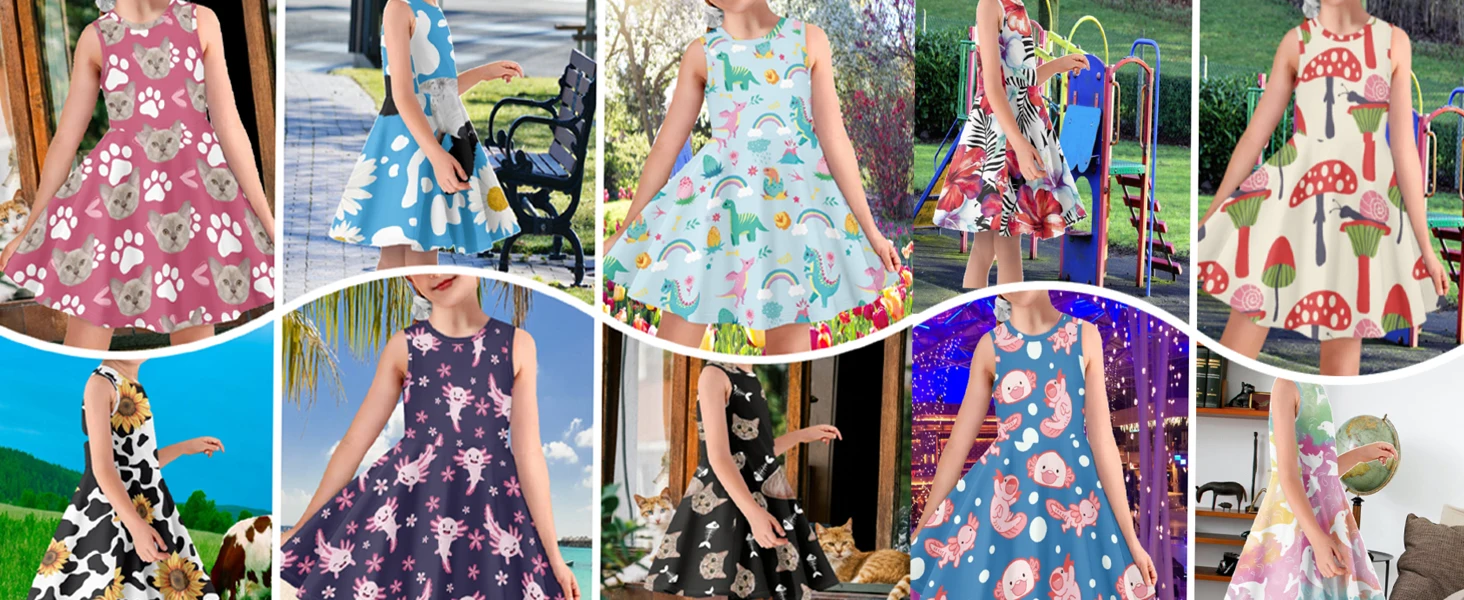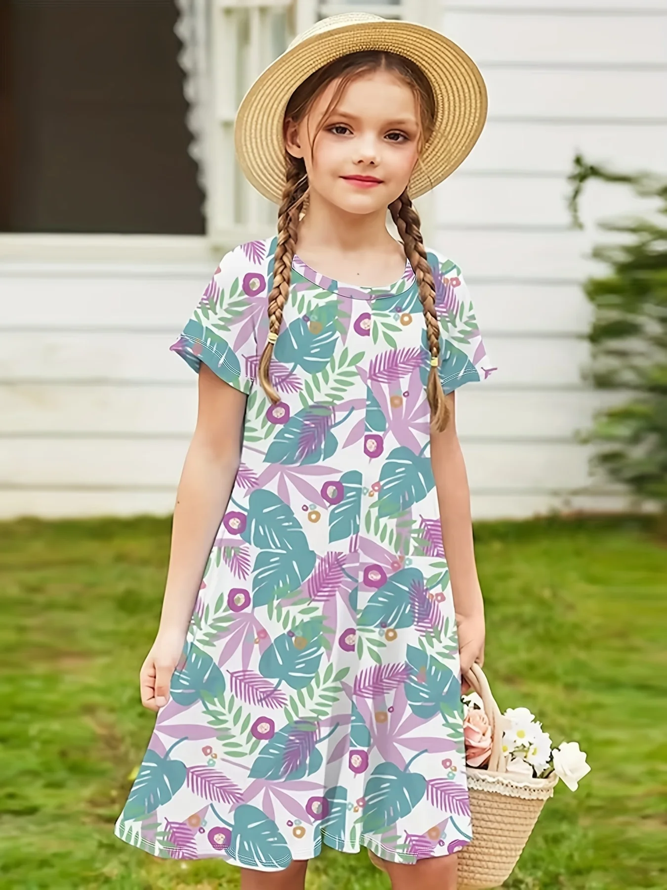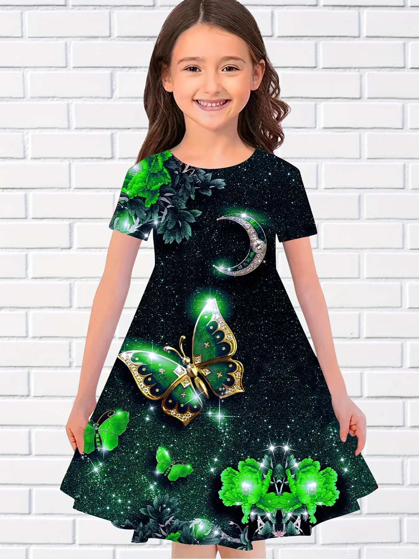 3-14 year old girl butterfly small fresh 3D printed short sleeved dress loose and comfortable party dress