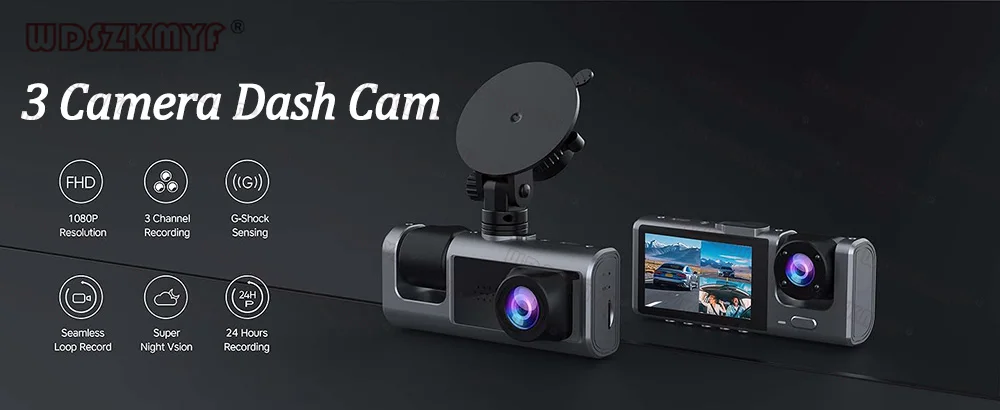 3 Channel Dash Cam for Car Front And Rear Camera 1080P Video Recorder Dashcam Black Box Car DVR Rear View Camera car accessory