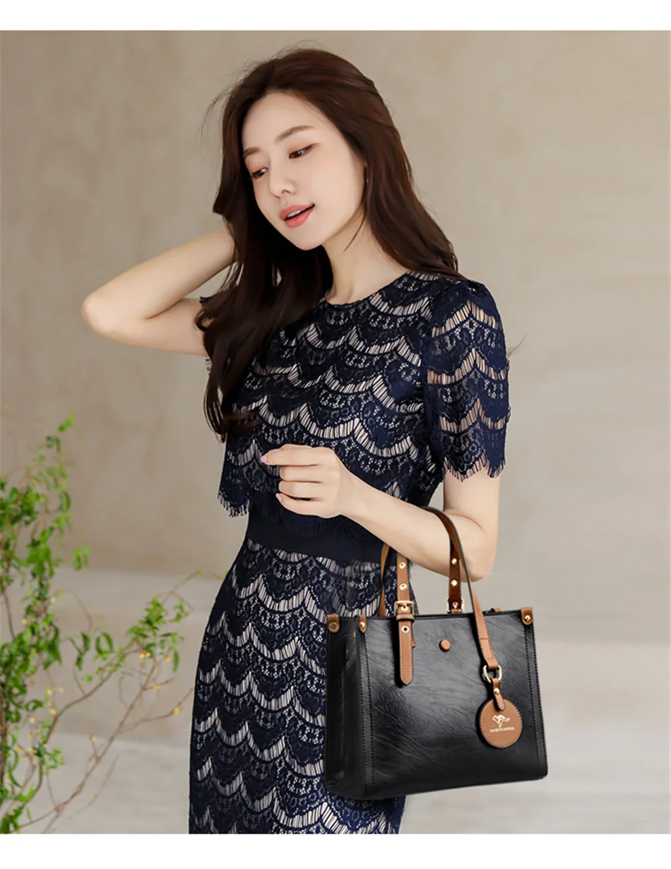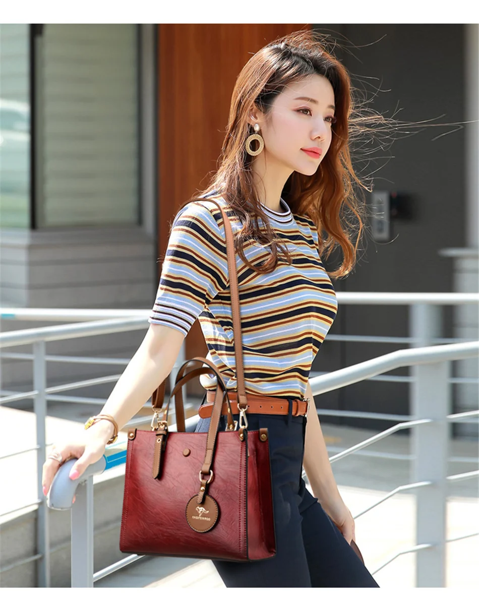 3 Layers Casual Tote Vintage Ladies Tote Hand Bag Leather Luxury Handbags Women Designer Bags for Women 2024 Sac A Main Femme