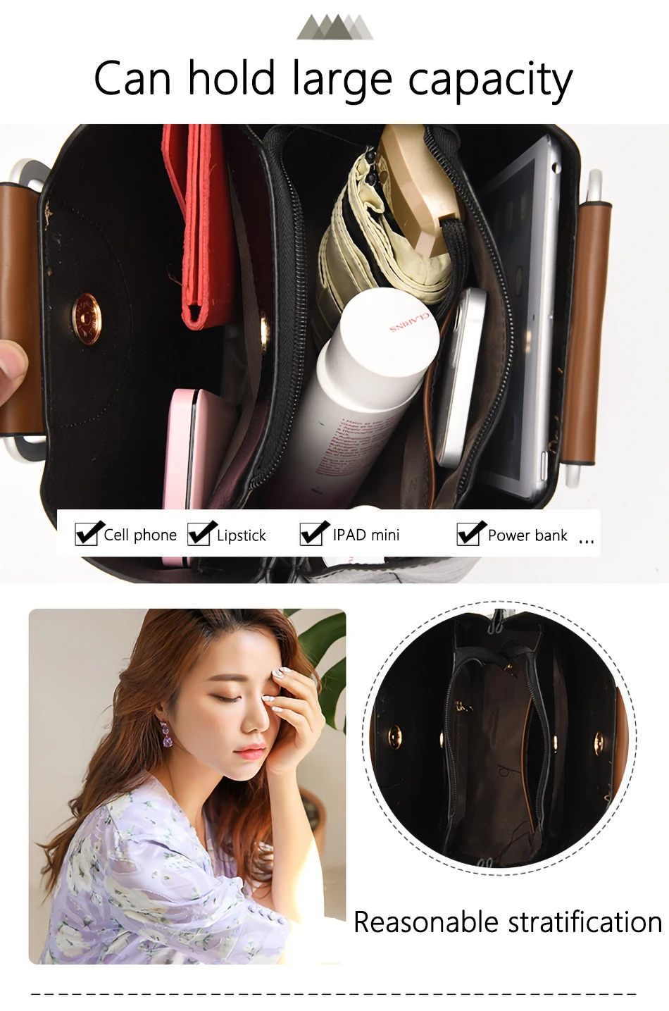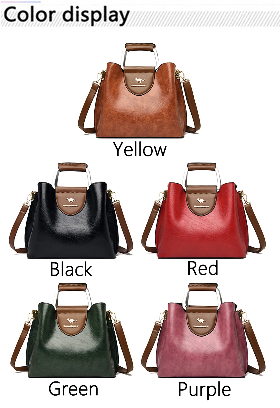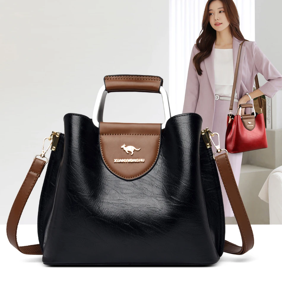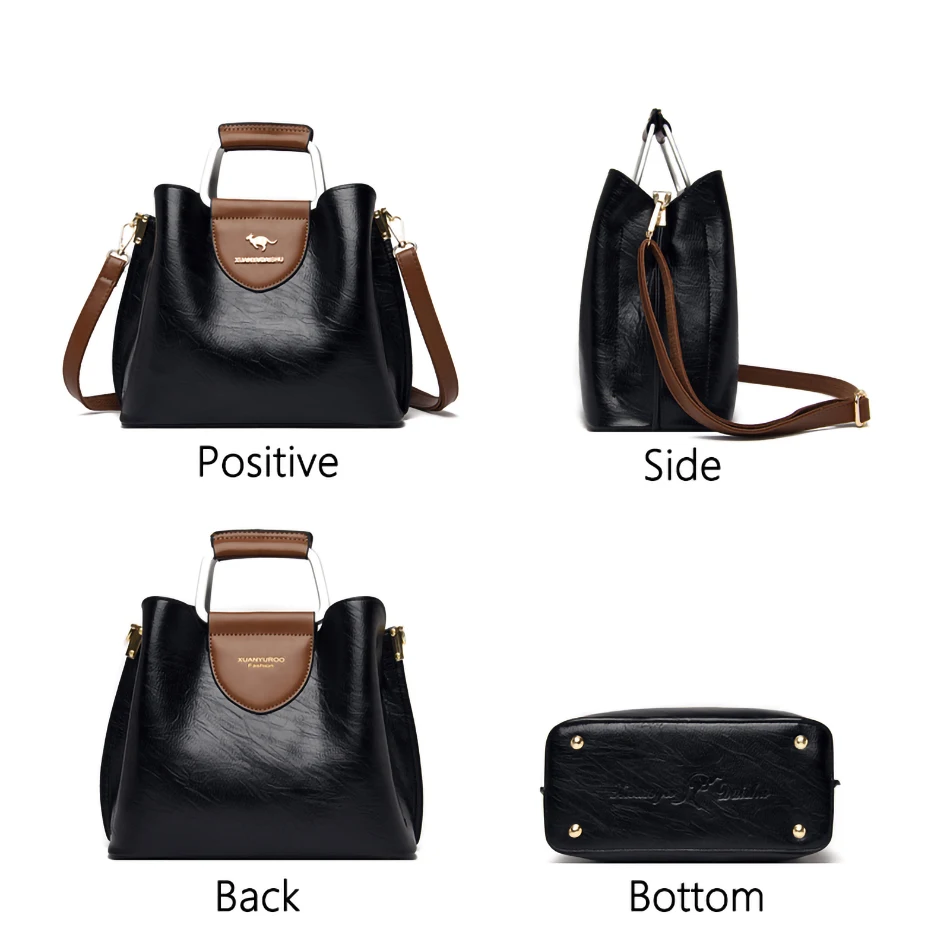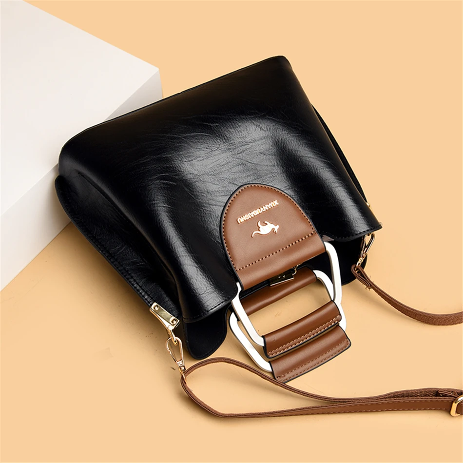 Large Capacity High Quality PU Leather Lady Messenger Bag Retro Designer Metal Handle Shoulder Bag Fashion Contrast Color Design