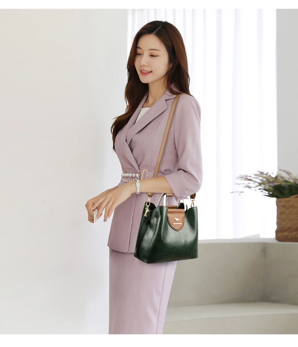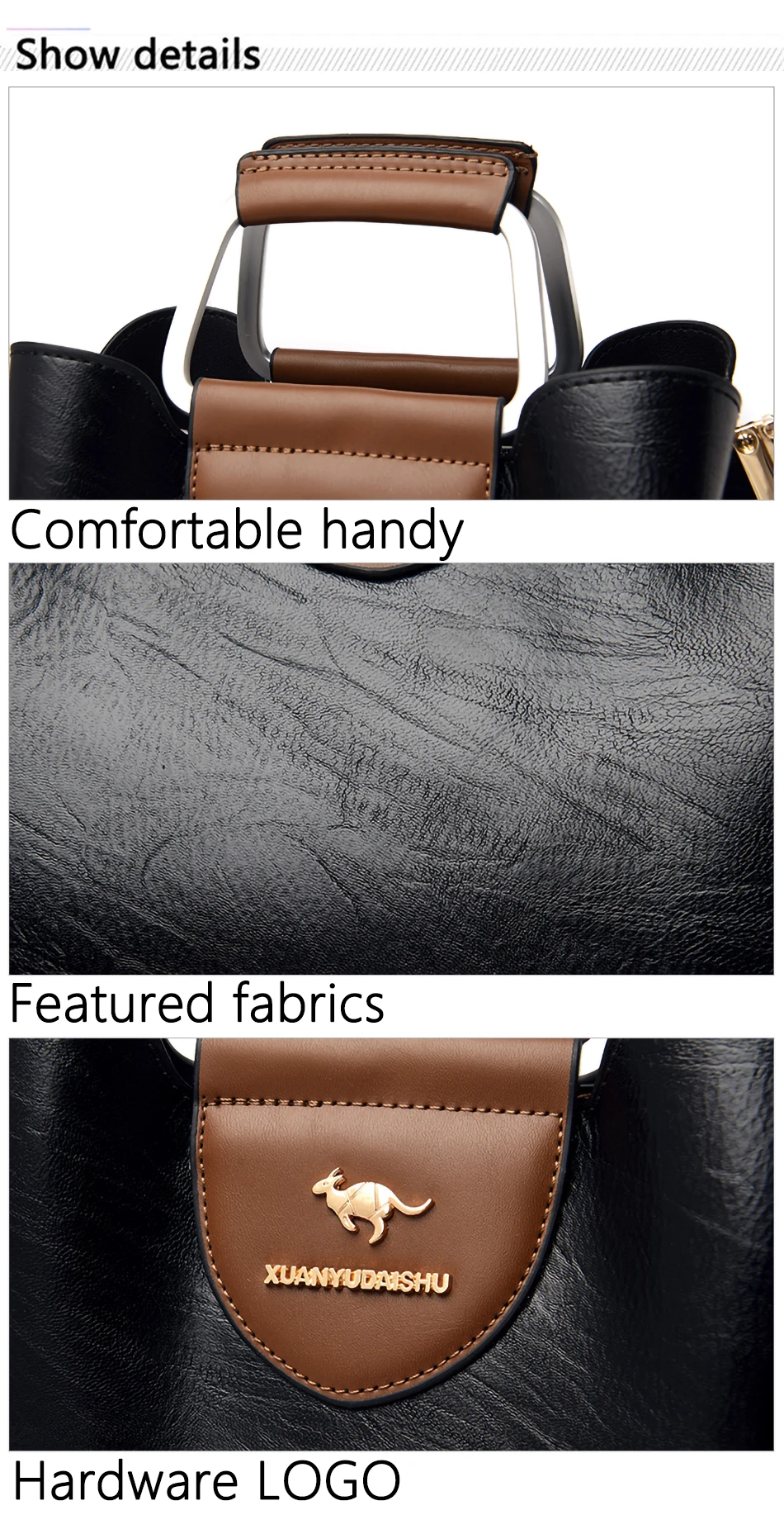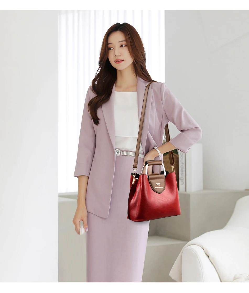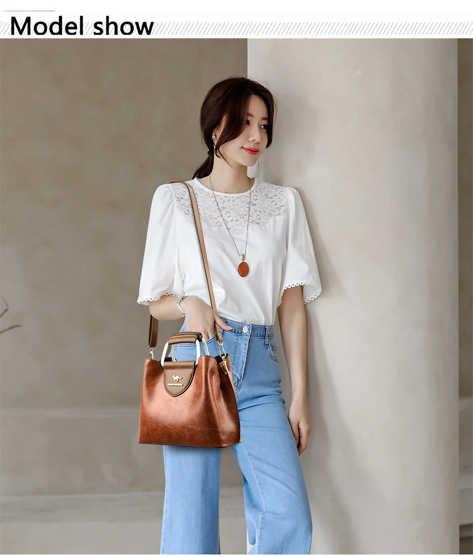 Large Capacity High Quality PU Leather Lady Messenger Bag Retro Designer Metal Handle Shoulder Bag Fashion Contrast Color Design